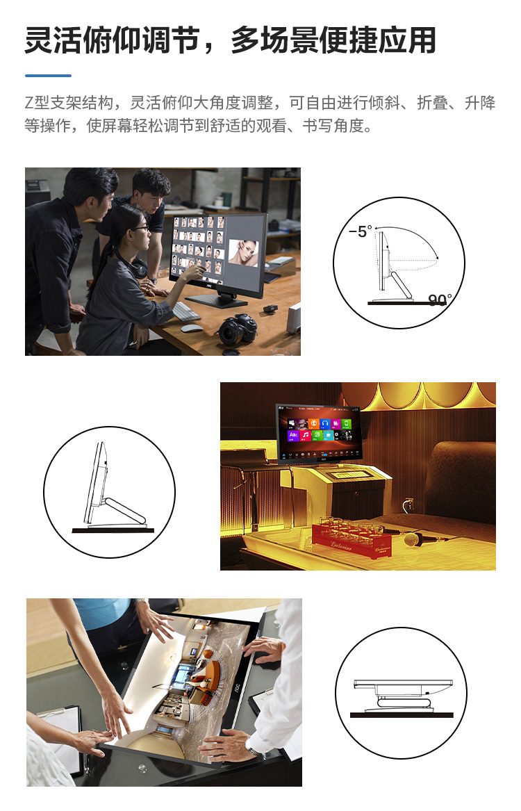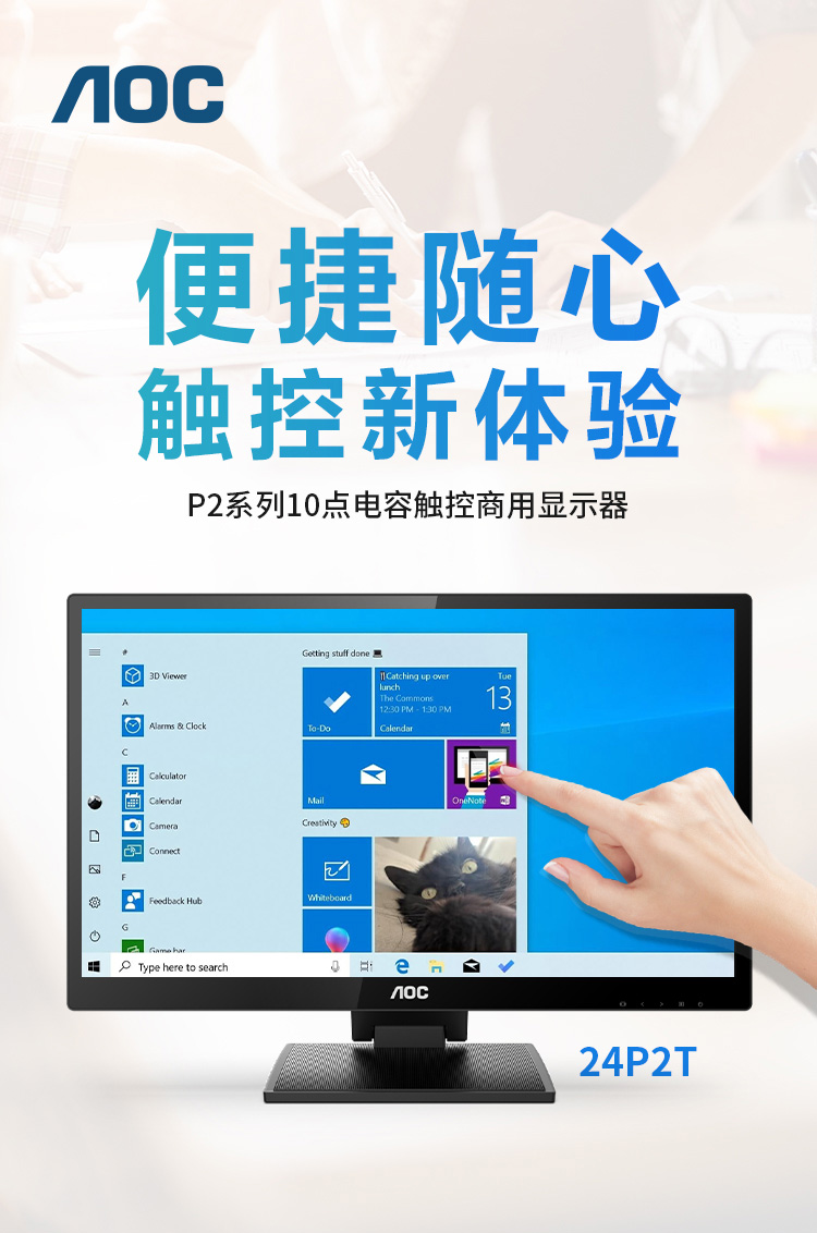 AOC 24P2T显示器 23.8英寸/10点电容触控/支持多媒体教学/内置高保真音响/含特殊安装及异形支架(可折叠+仰角调节)含工程高清屏蔽线材(USBA/B 线 和双磁环HDMI) 五年原厂保修(只换不修服务)单位:台
