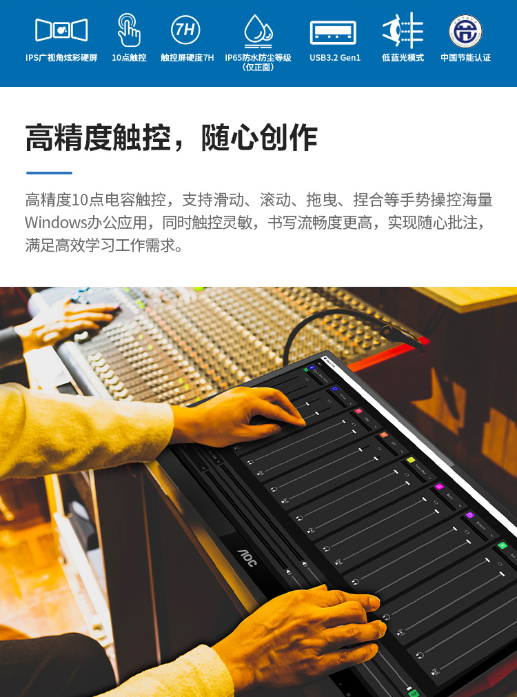 商品名称:AOC 24P2T显示器 23.8英寸/10点电容触控/支持多媒体教学/内置高保真音响/含特殊安装及异形支架(可折叠+仰角调节)含工程高清屏蔽线材(USBA/B 线 和双磁环HDMI) 五年原厂保修(只换不修服务)单位:台