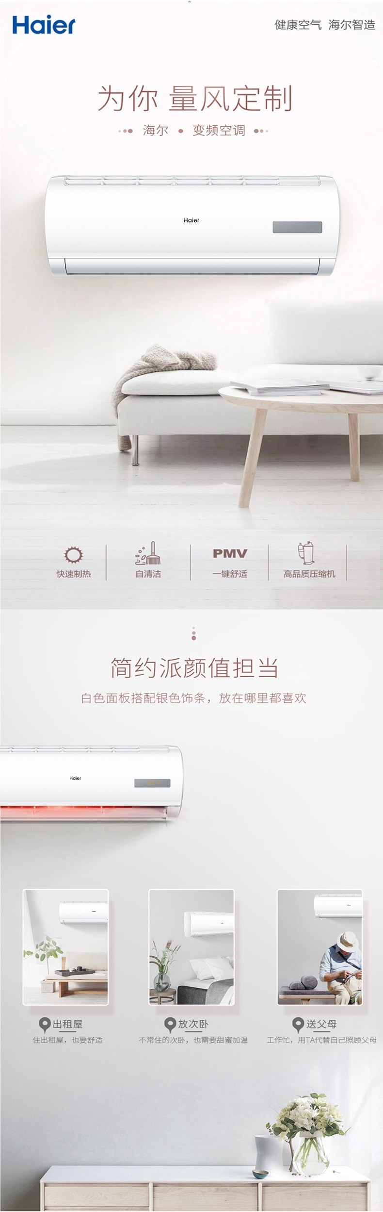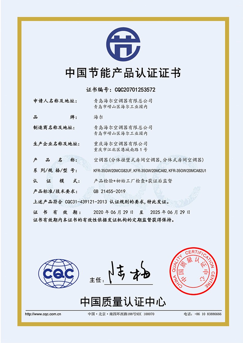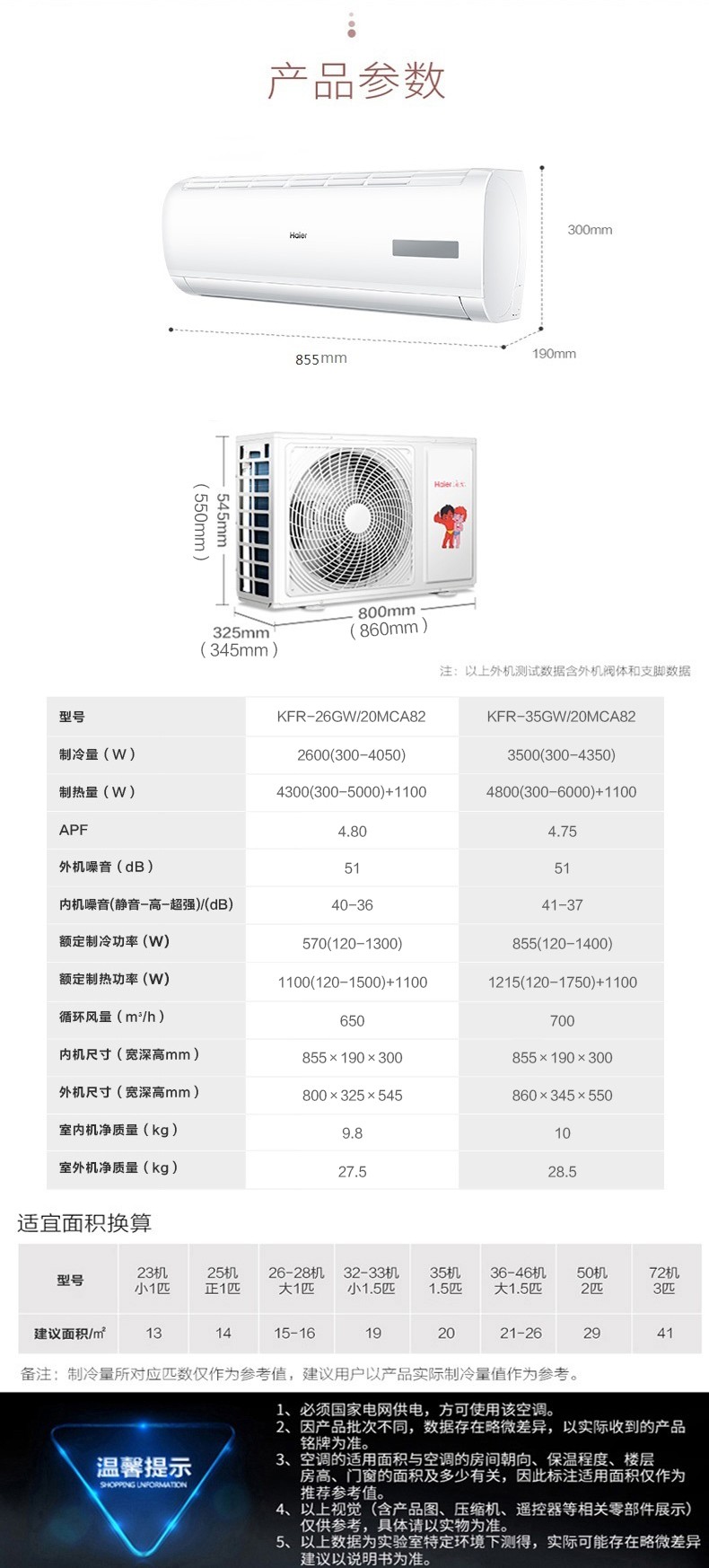 商品名称:海尔KFR-35GW/20MCA82壁挂式空调 1.5匹/冷暖/变频/2级能效 单位:台