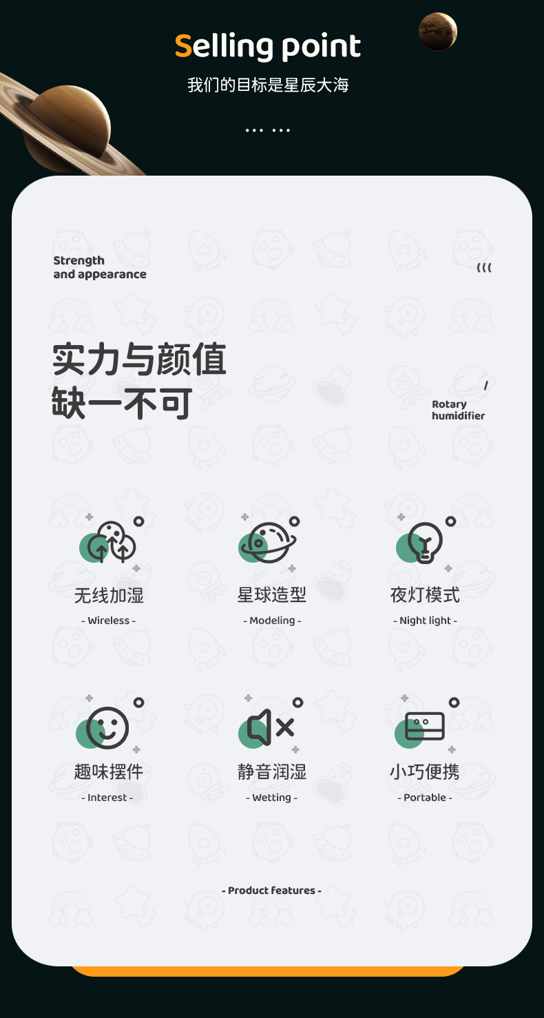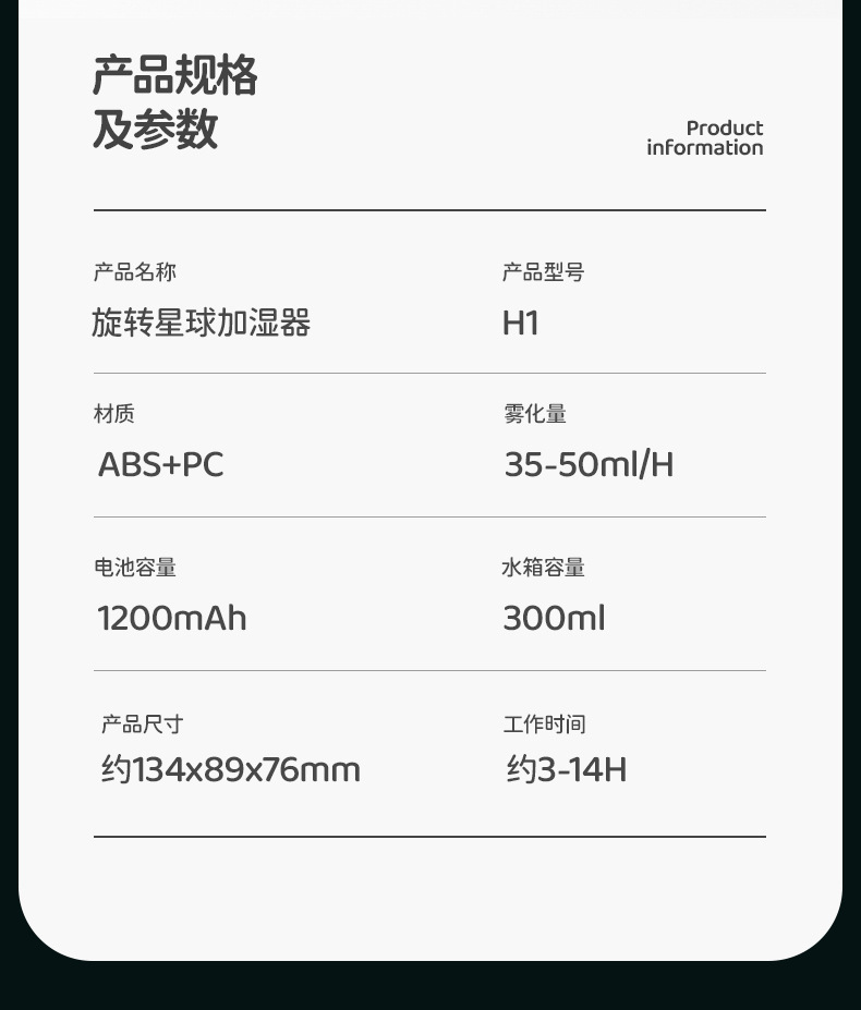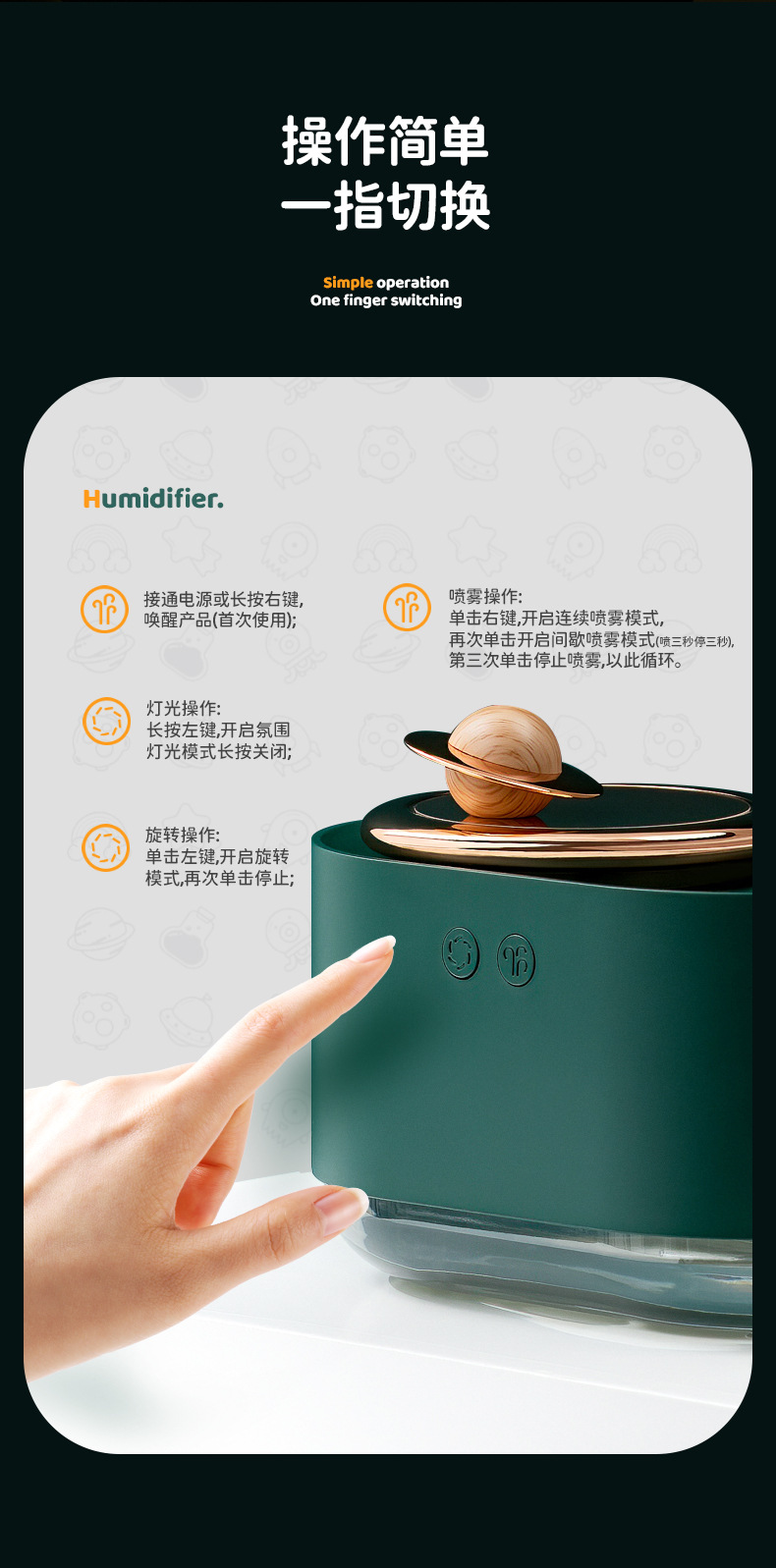 商品名称:旋转星球H1加湿器 墨绿色 单位:台