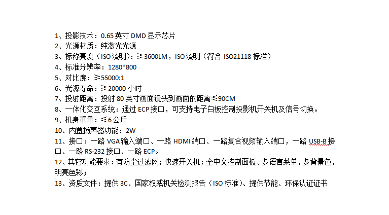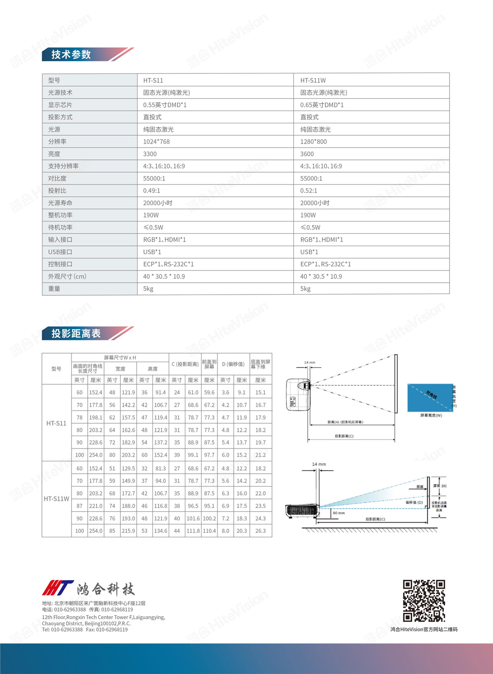 商品名称:鸿合HT-S11W会议室商务投影仪 单位:台