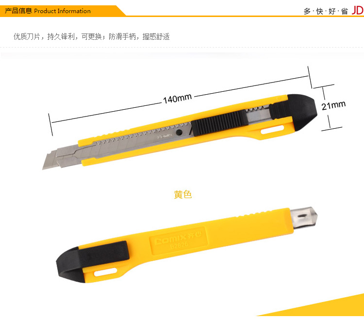 商品名称:齐心B2826防滑自锁美工刀小号壁纸刀 9mm 颜色随机