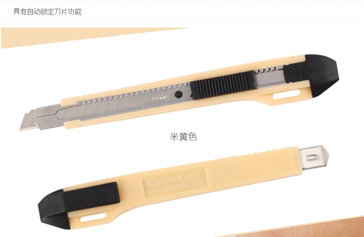 齐心(COMIX)防滑自锁美工刀小号壁纸刀 9mm 颜色随机 办公文具 B2826