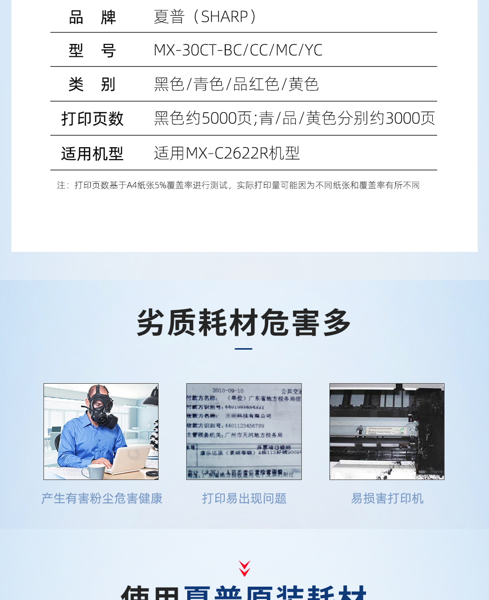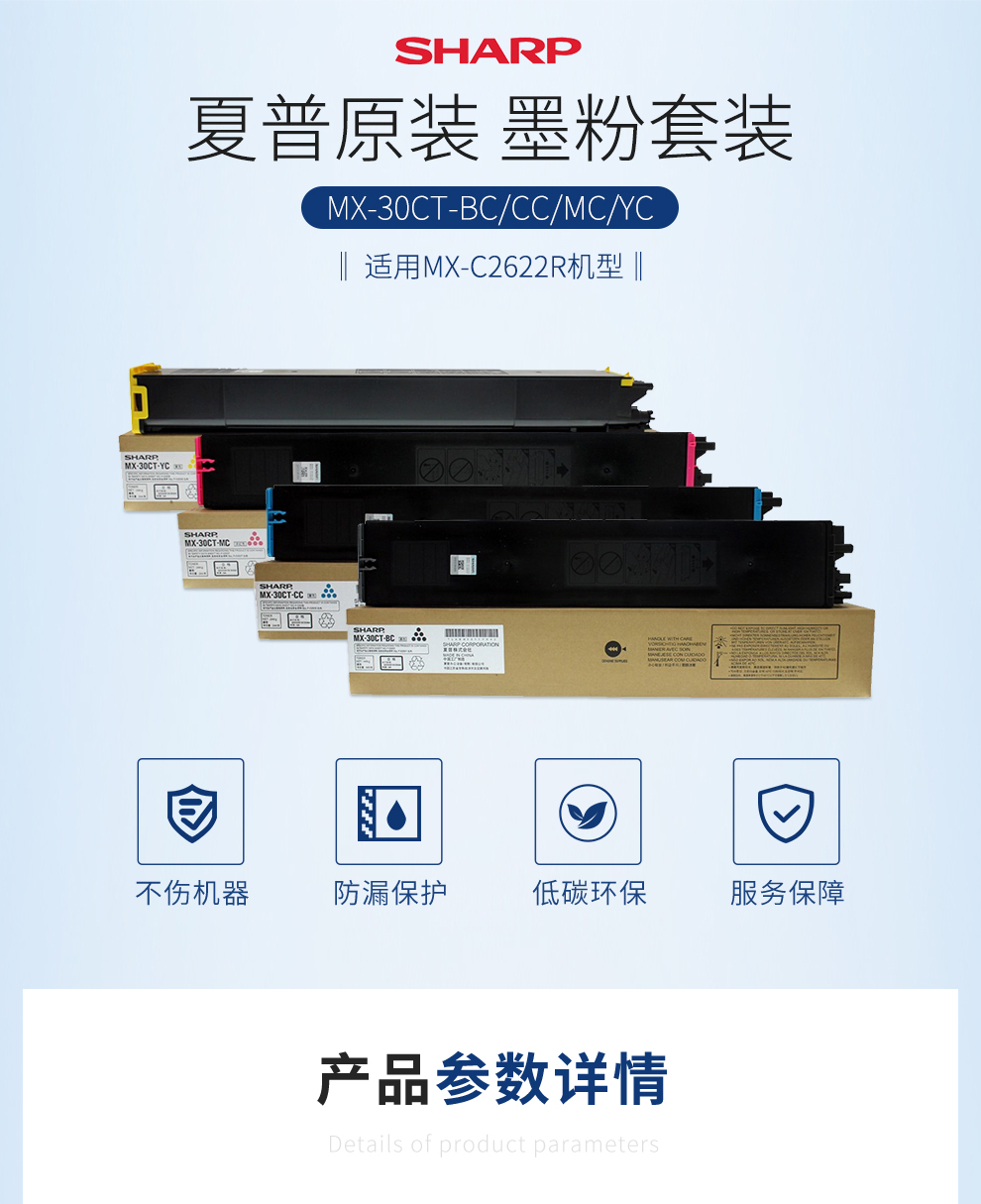 商品名称:夏普MX-30CT-BC/CC/MC/YC墨粉套装 黑色/青色/品红色/黄色 适用MX-C2622R机型 单位:套
