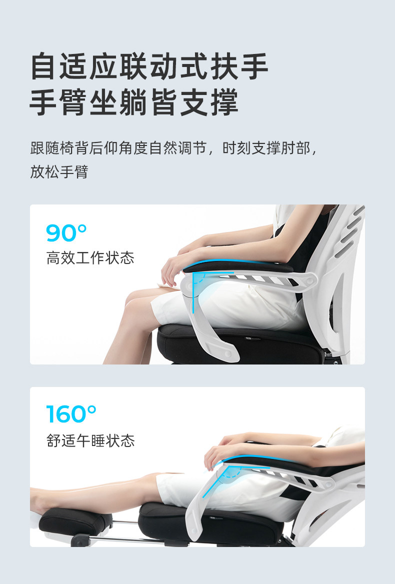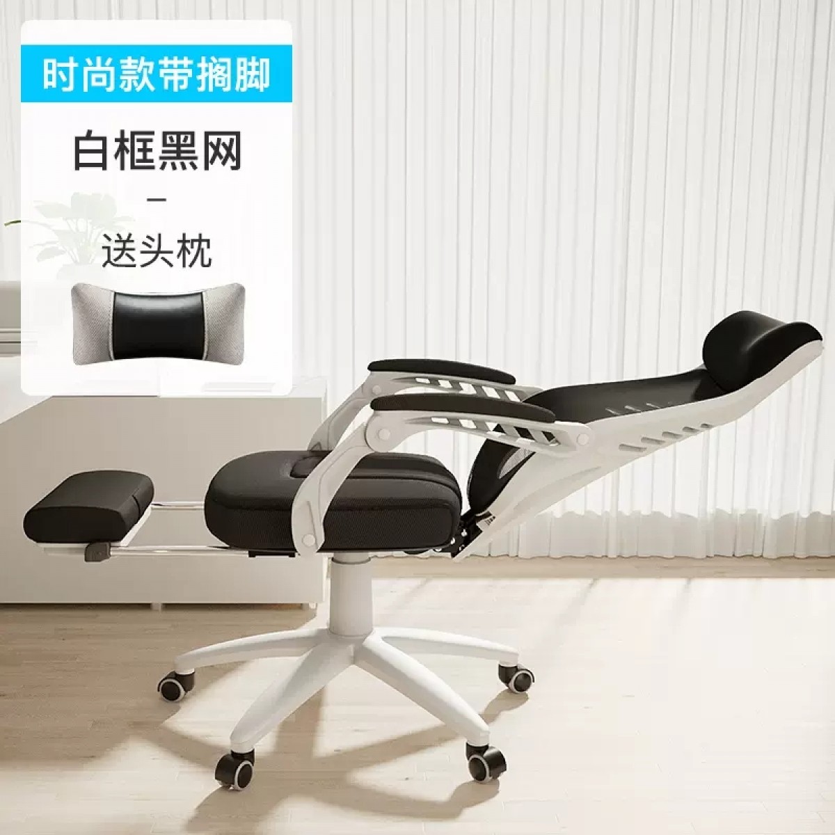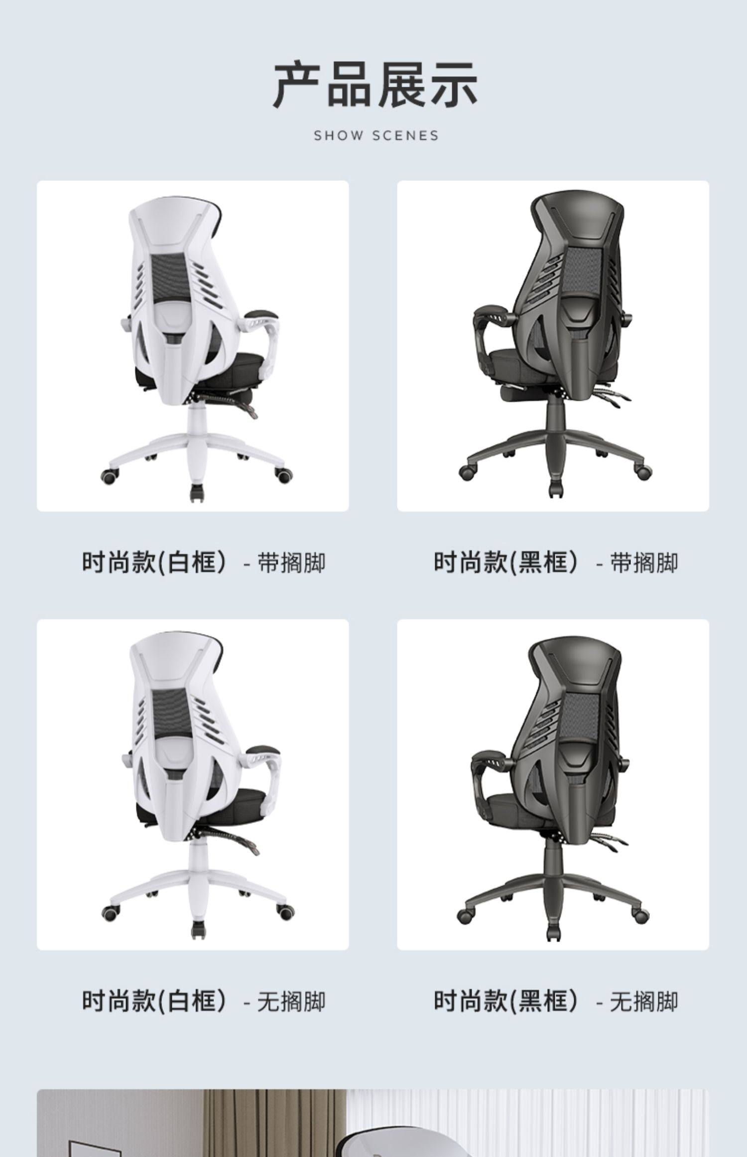 习格电脑椅160º可躺 时尚款 黑网白框 带搁脚
