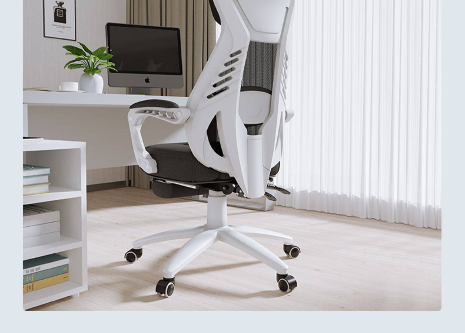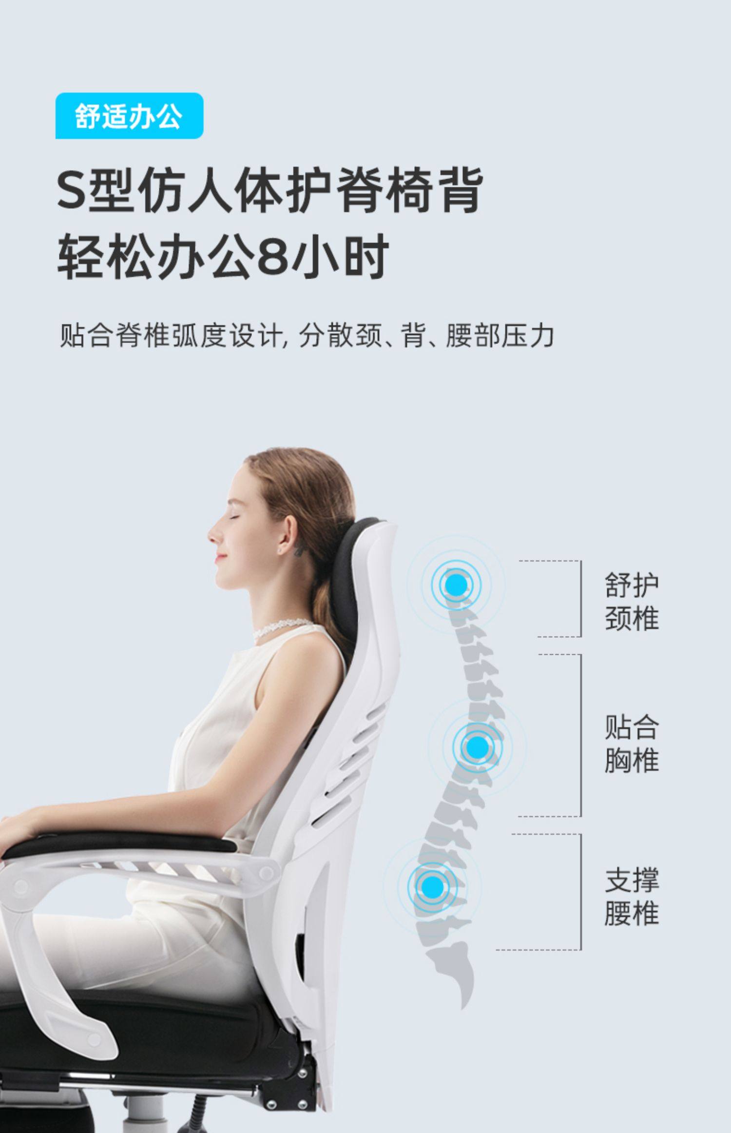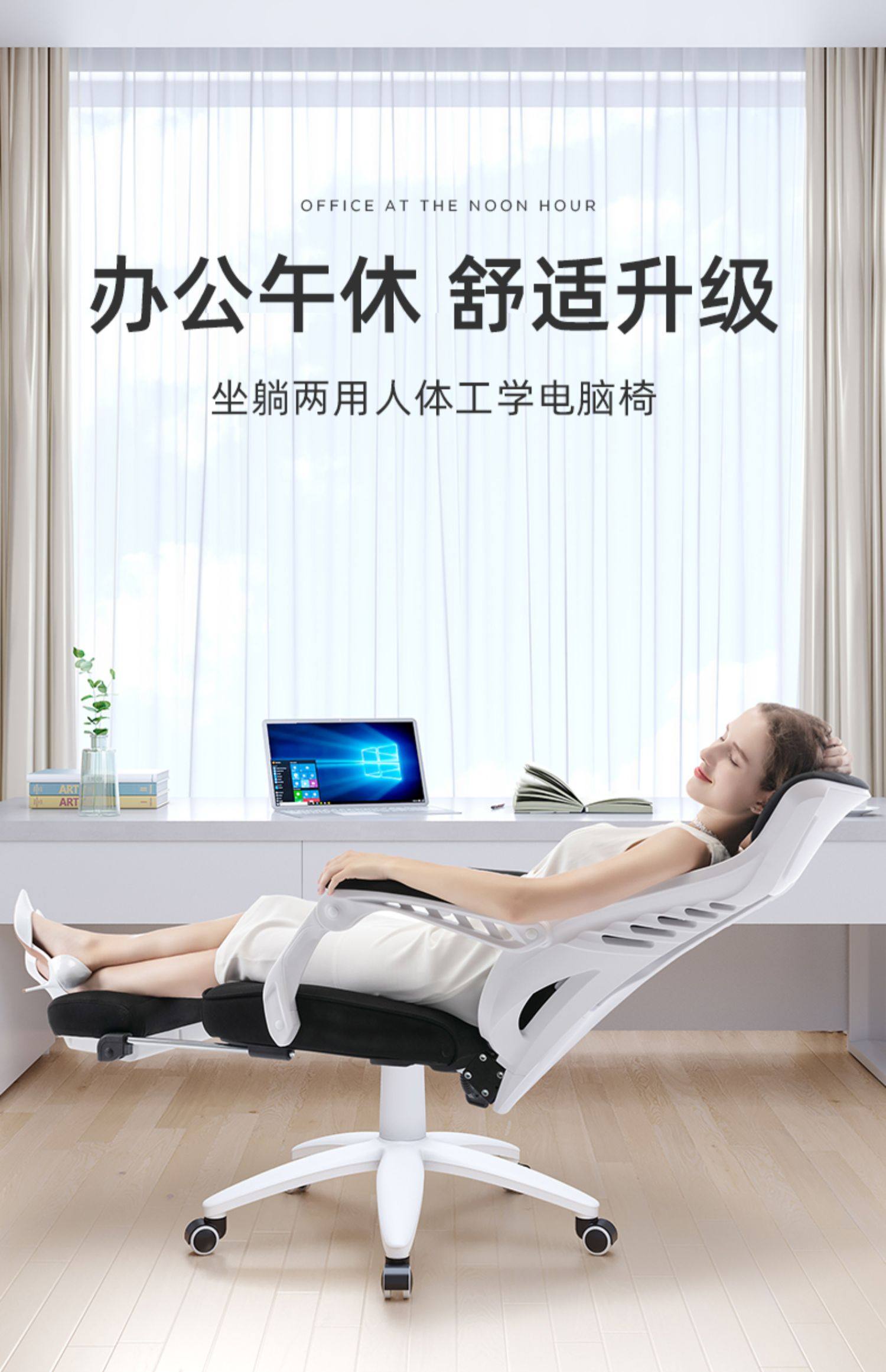 习格电脑椅160º可躺 时尚款 黑网白框 带搁脚