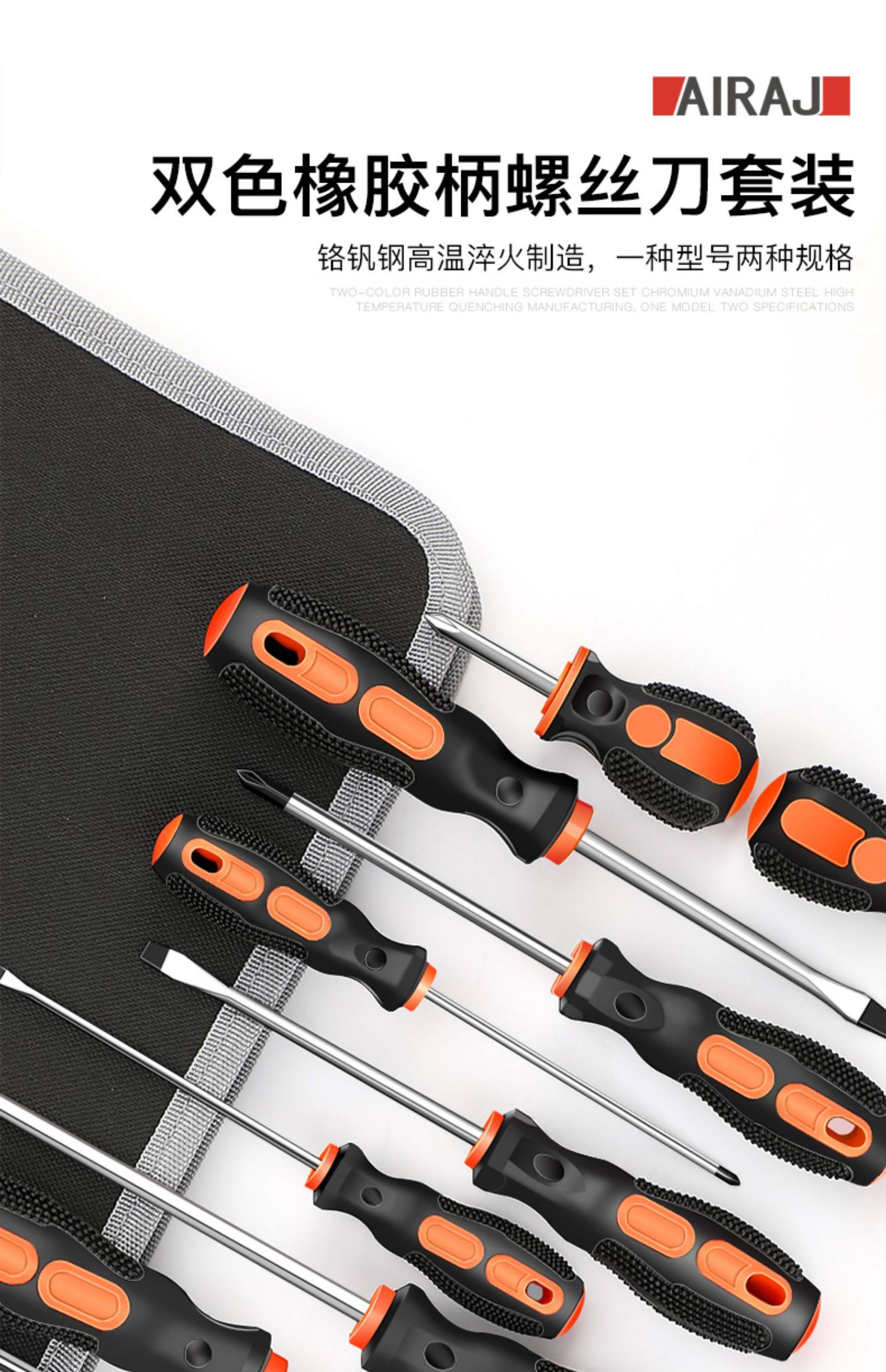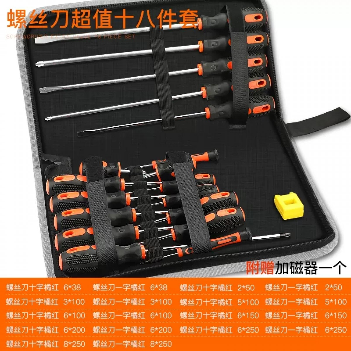 商品名称:艾瑞泽双色橡胶柄螺丝刀套装 18件套收纳包螺丝包组套(送加磁器)单位:套