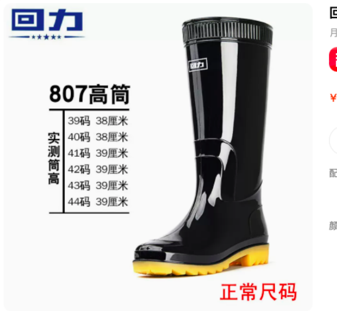 商品名称:回力807雨鞋 高筒单层 41码 单位:双