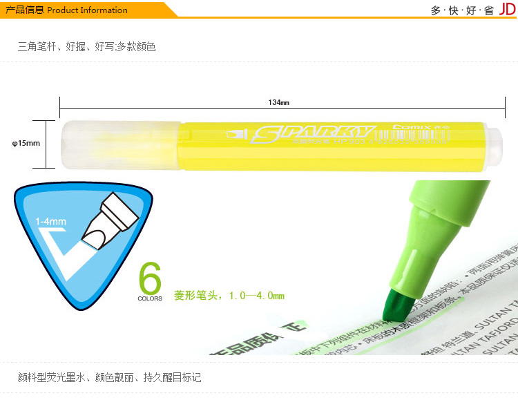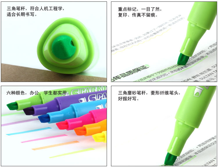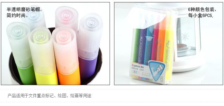 商品名称:齐心(Comix)6支装彩色荧光笔 创意可爱三角杆颜色笔 办公文具 K9036