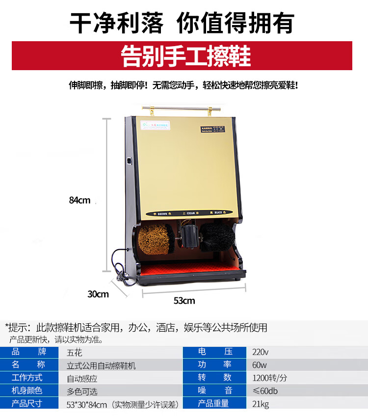 商品名称:五花YK-D521自动擦鞋机 半包金 单位:台