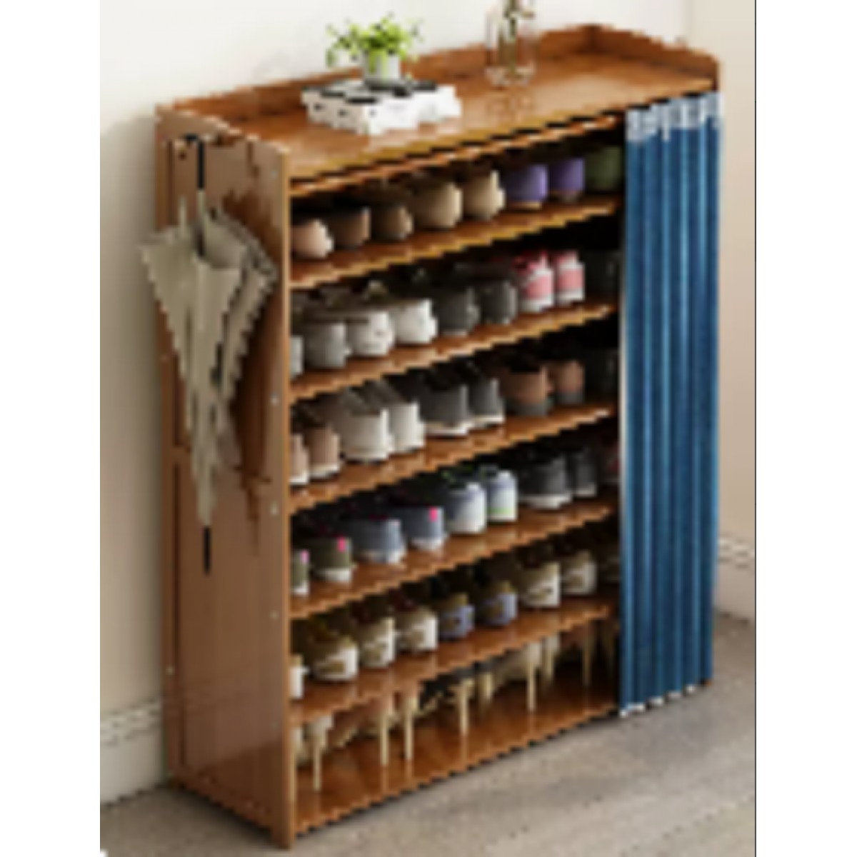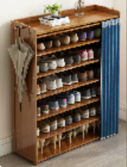 楠竹鞋架子 藏蓝 七层102cm 送挂钩