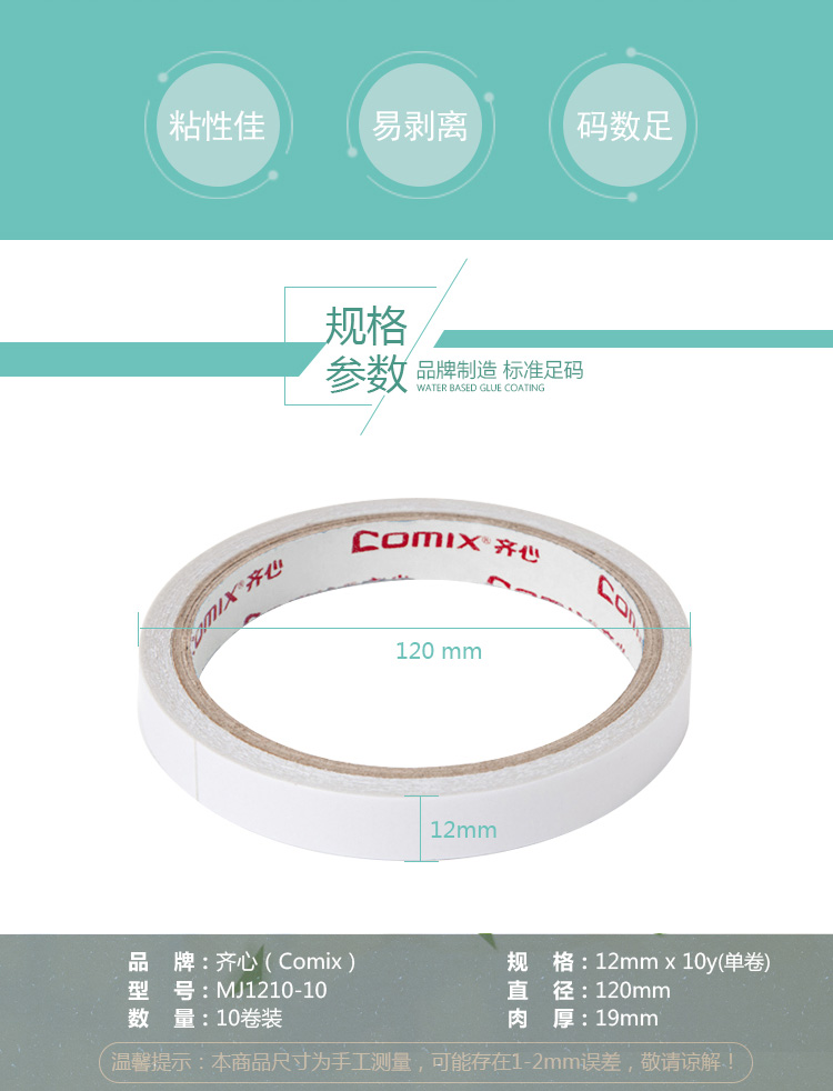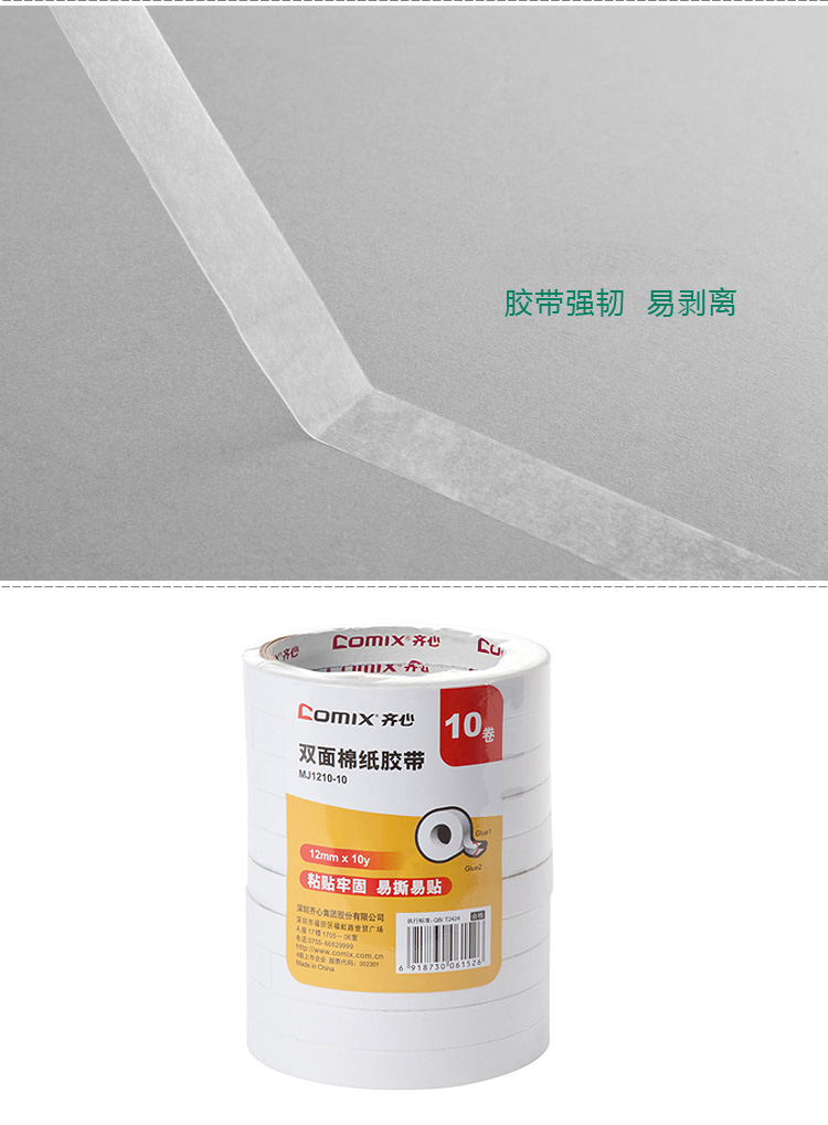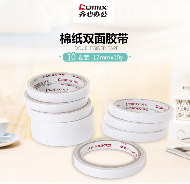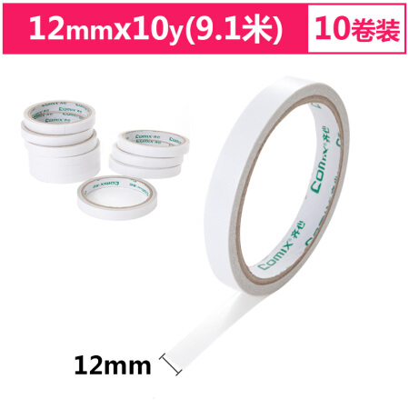 商品名称:齐心(COMIX)10卷装12mm*10y(9.1米)棉纸双面胶带 办公文具 MJ1210-10