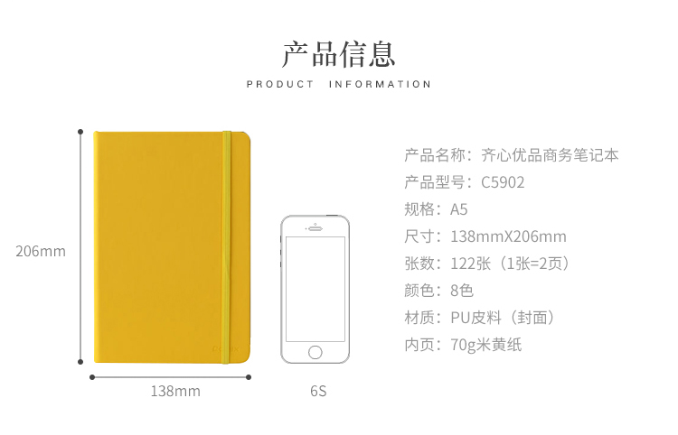 商品名称:齐心(COMIX)A5 122张优品商务笔记本子/记事本/日记本 黑色 办公文具C5902