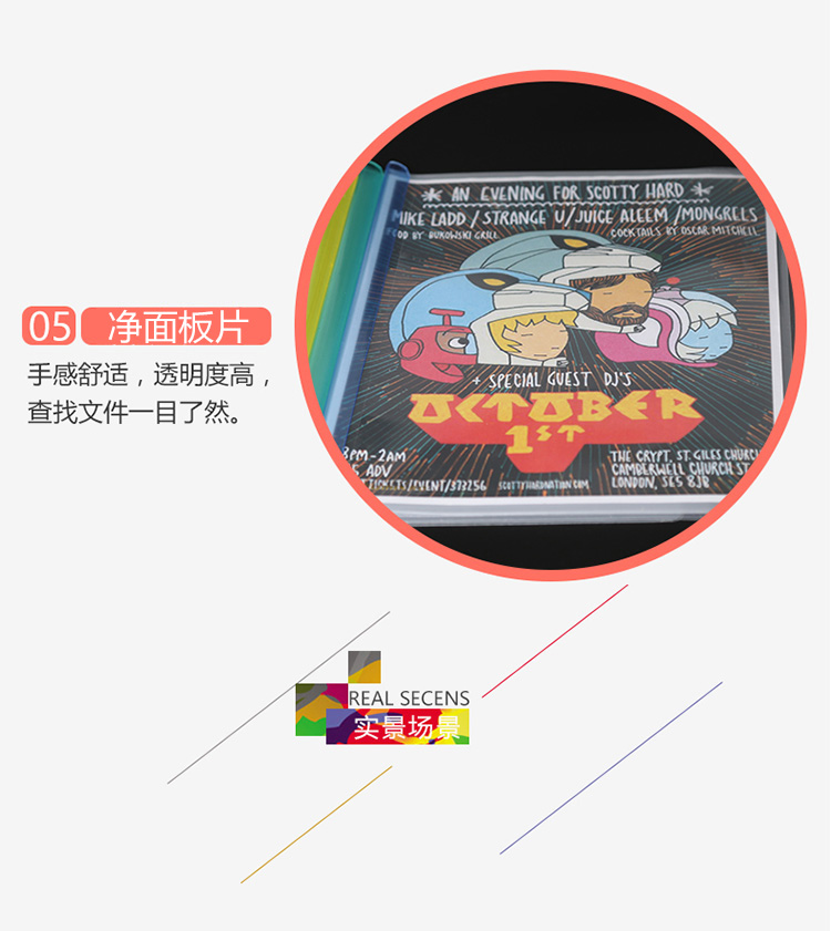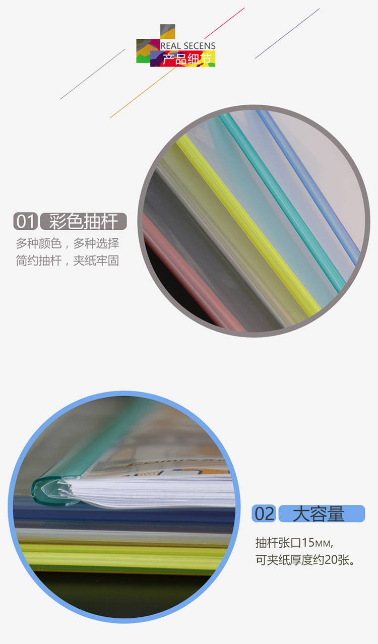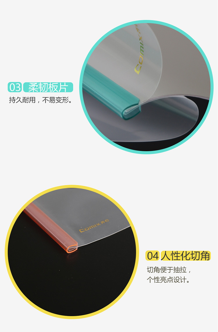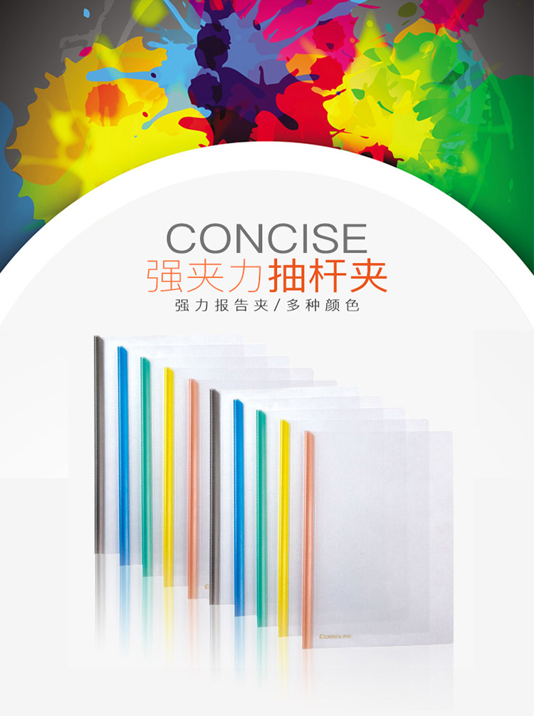 商品名称:齐心EA856 A4彩色强夹力抽杆夹/报告夹/文件夹 一包5个