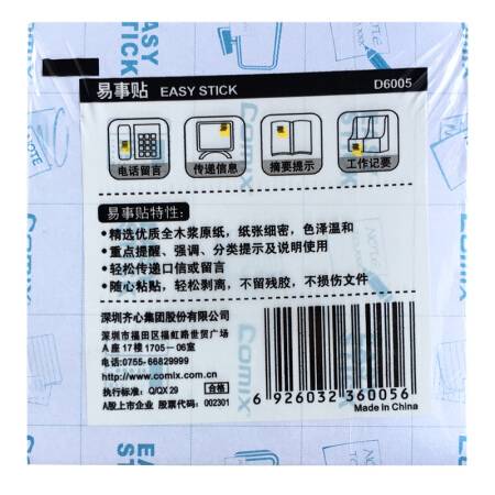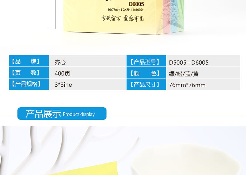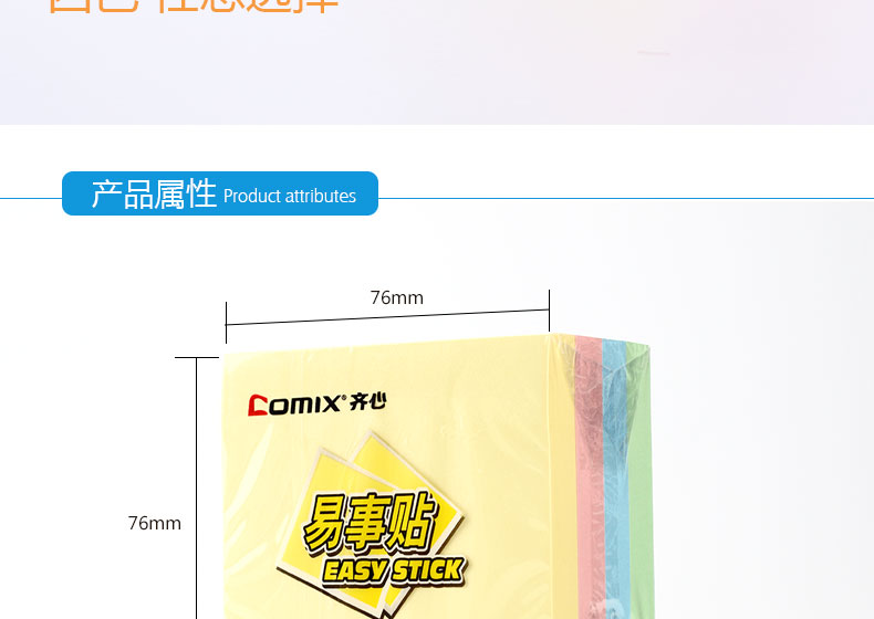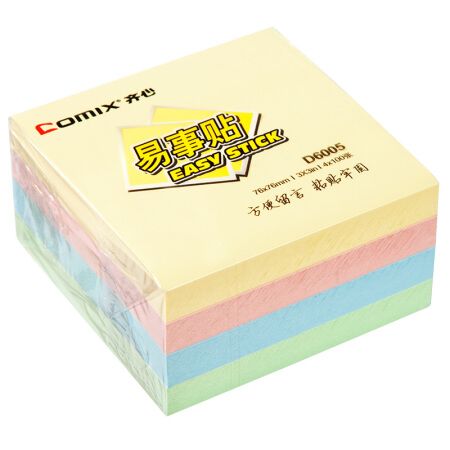 商品名称:齐心(Comix)4色装便利贴/便签纸/便签本/易事贴/百事贴(76x76mm) 办公文具 D6005 单位:包