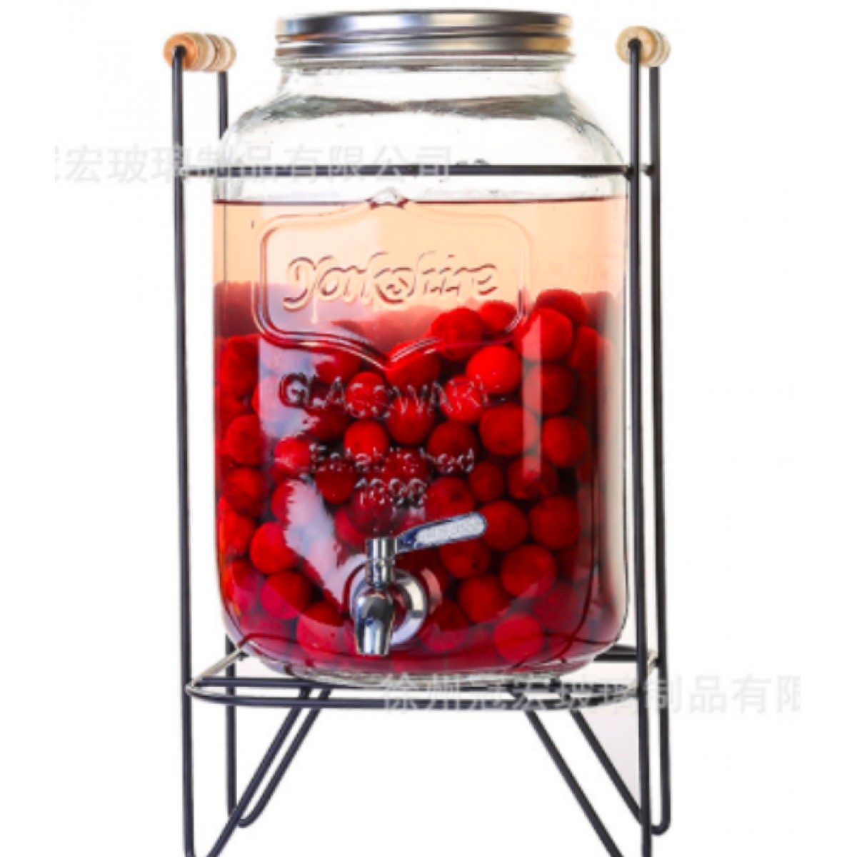 玻璃果汁桶带龙头 8L果汁桶+架子