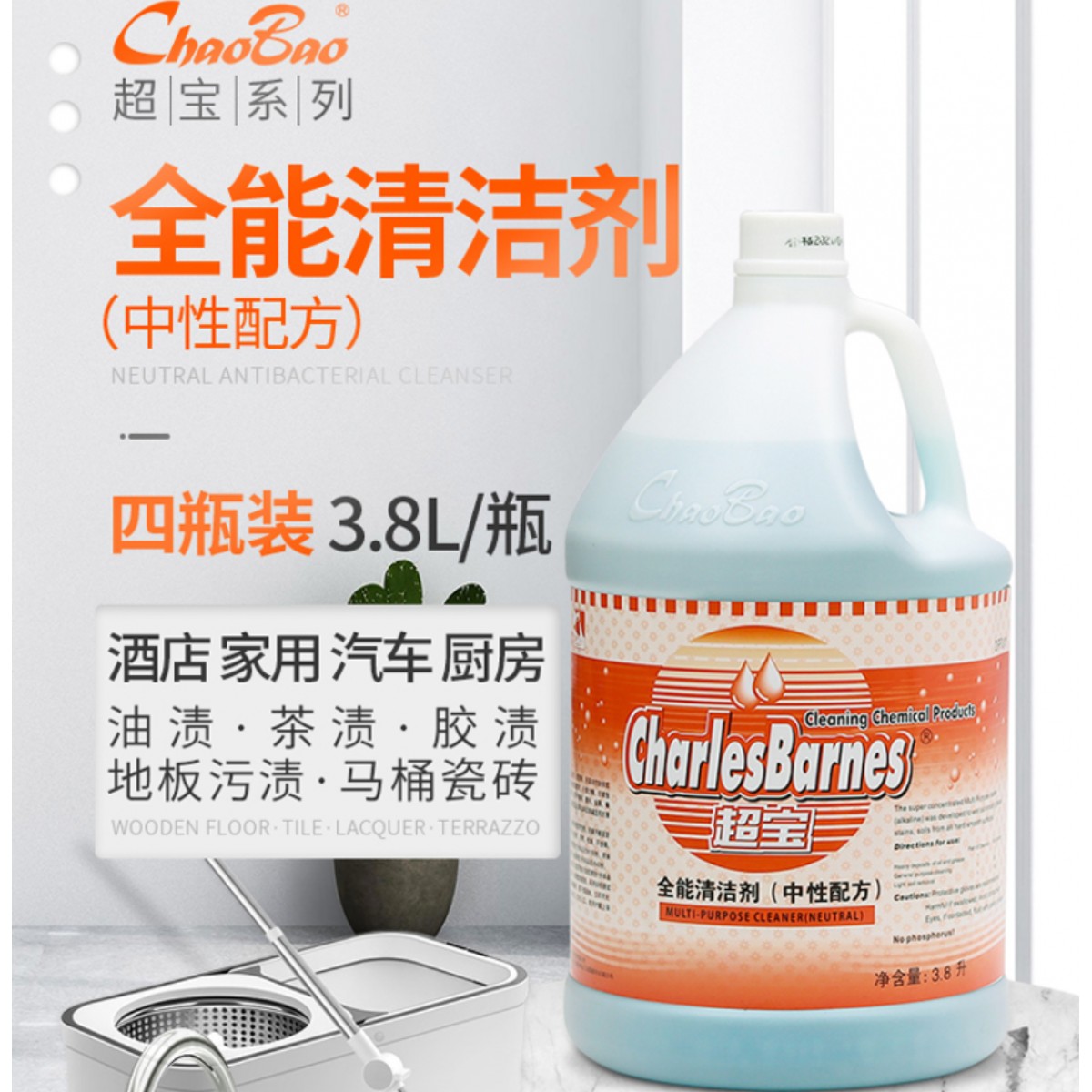 商品名称:超宝全能中性清洁剂 3.8L 单位:桶
