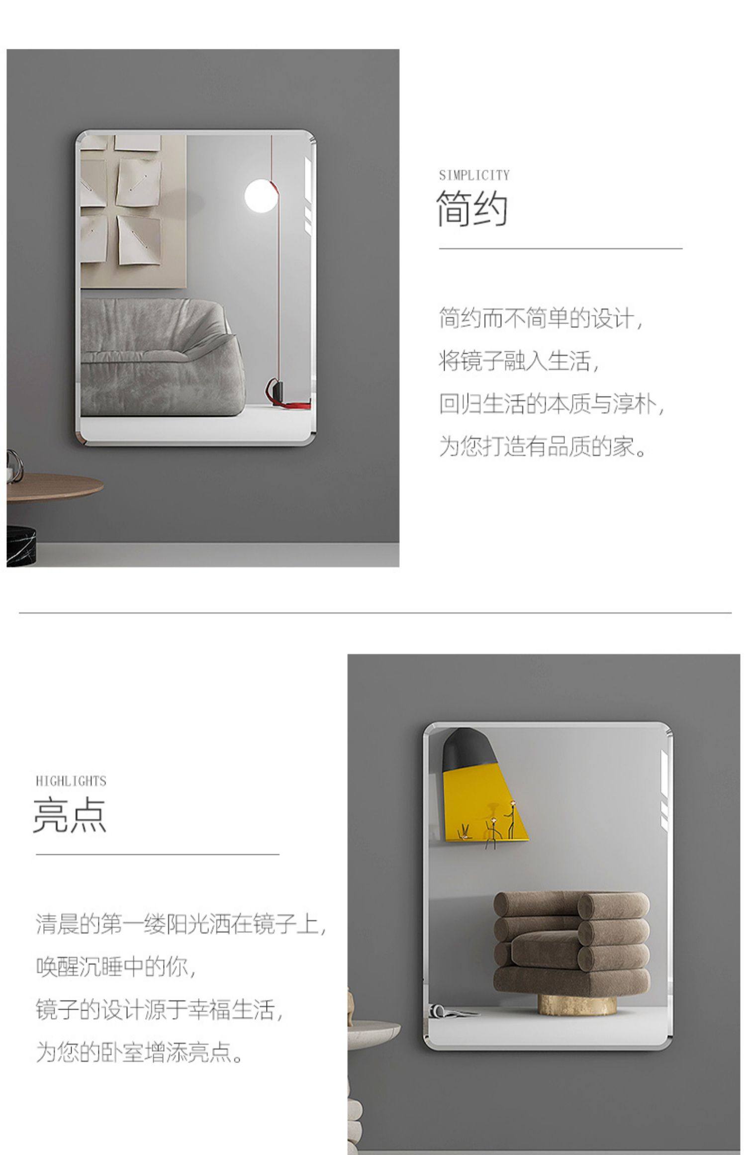 半身镜 防爆圆角 50*70cm 粘贴壁挂两用款 单位:面