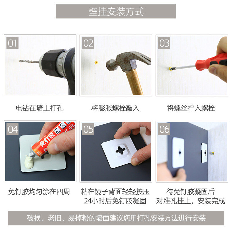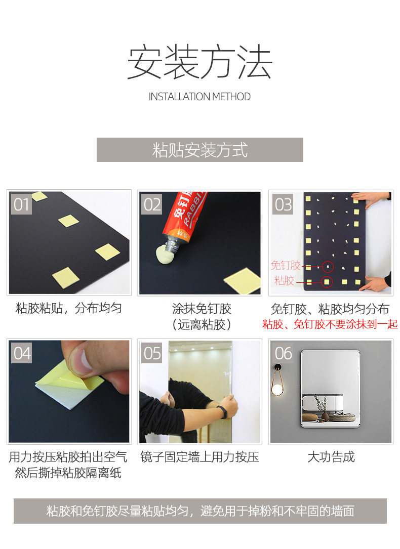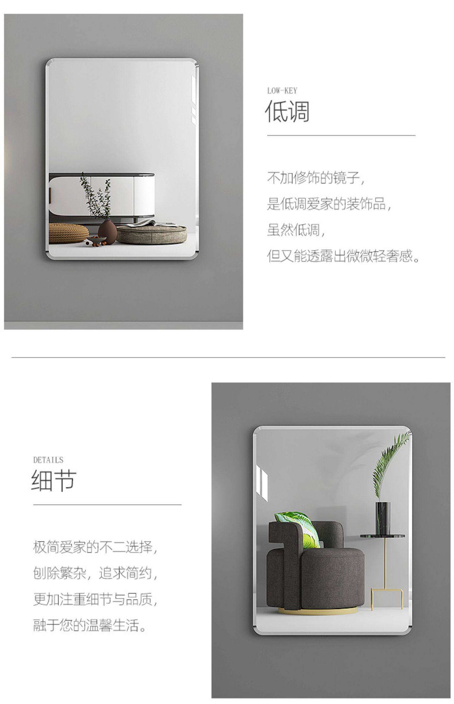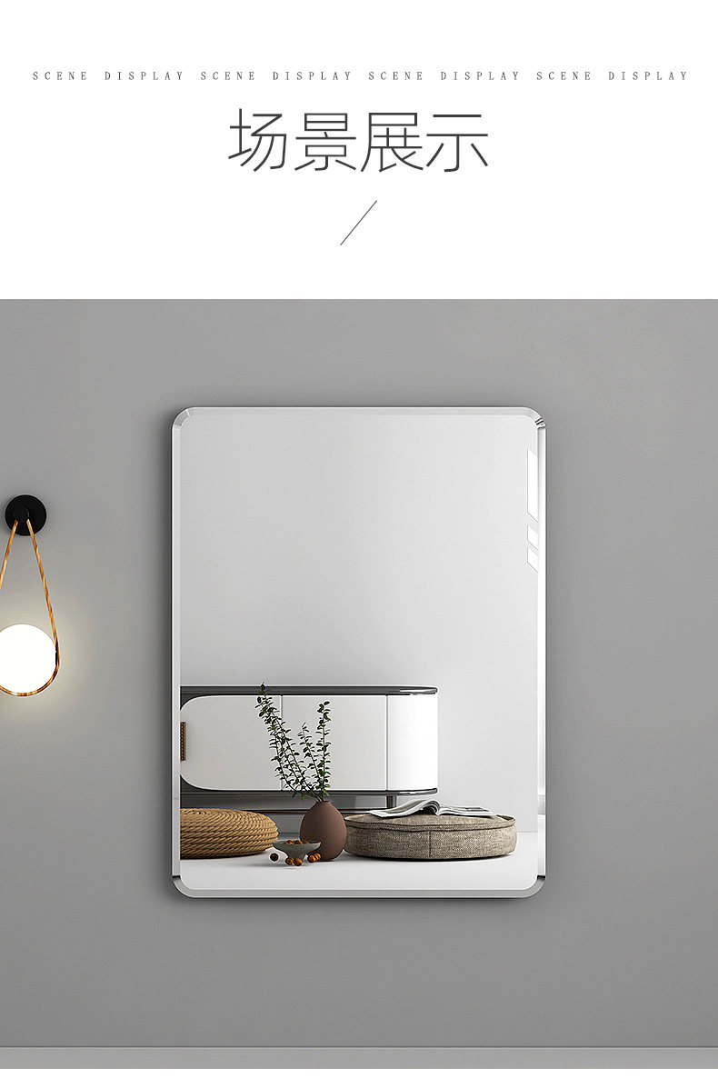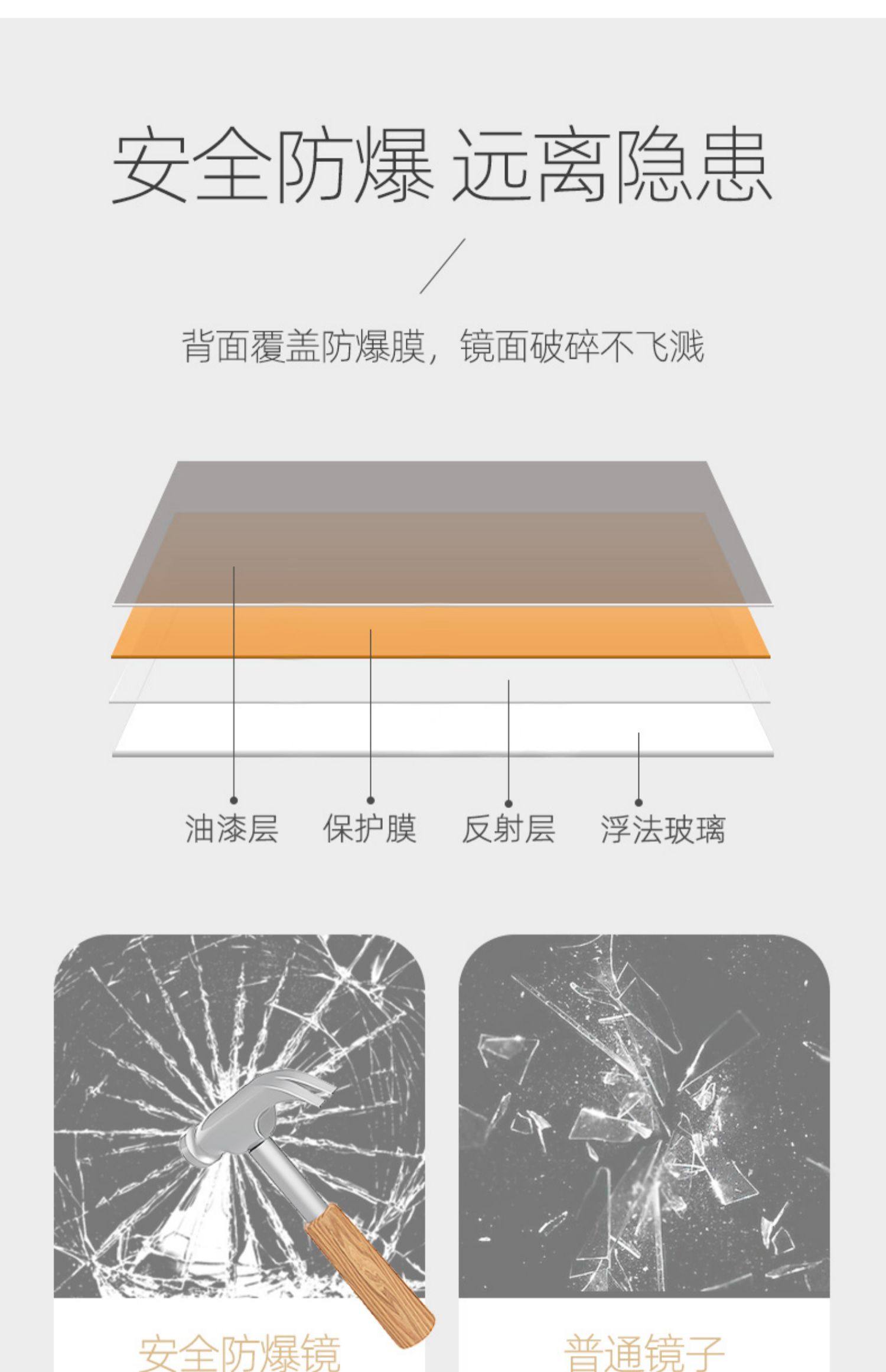 半身镜 防爆圆角 50*70cm 粘贴壁挂两用款