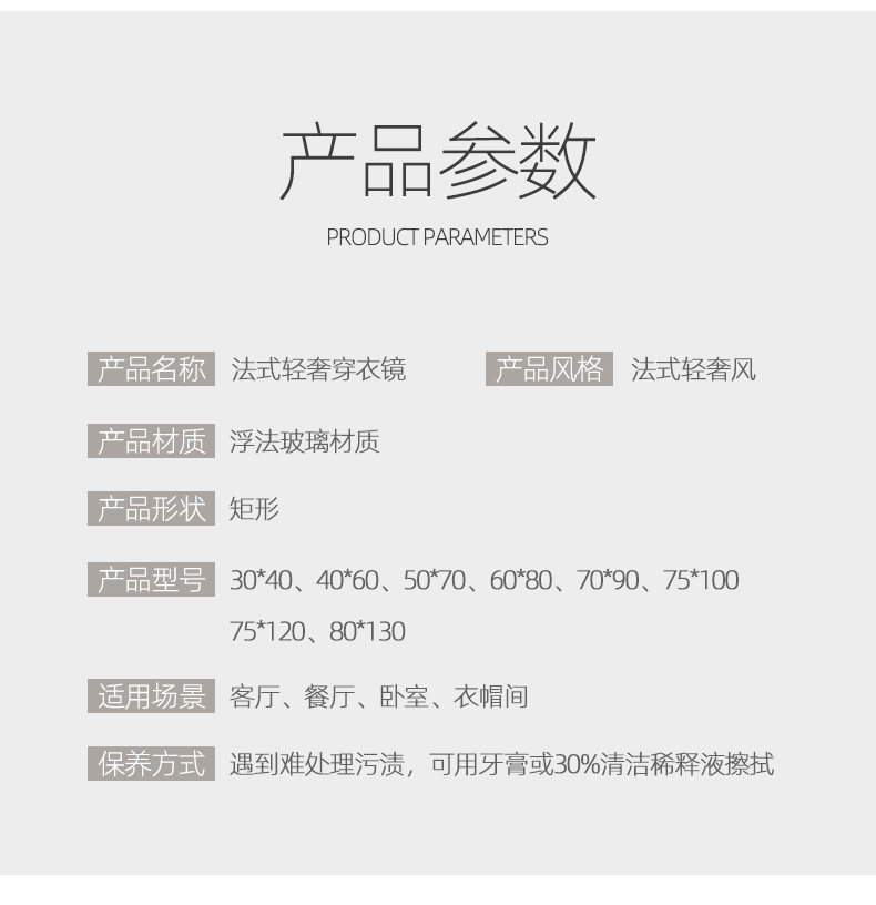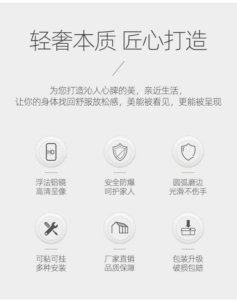 商品名称:半身镜 防爆圆角 50*70cm 粘贴壁挂两用款 单位:面