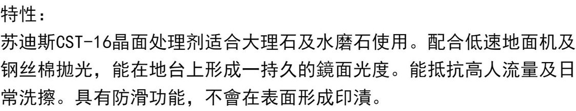 商品名称:苏迪斯CST-16石材晶面处理剂 5kg/桶 单位:桶