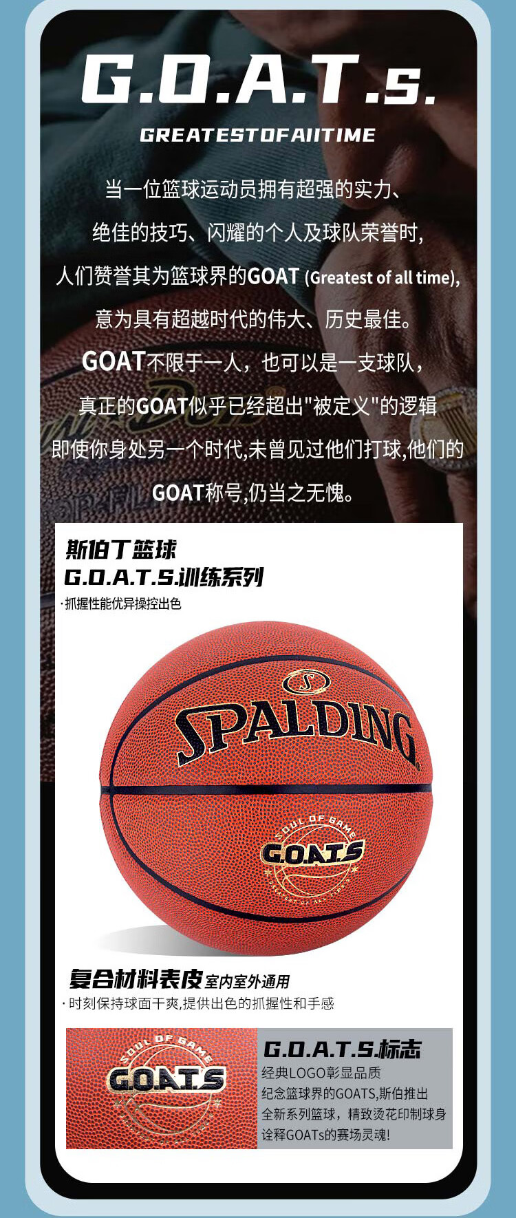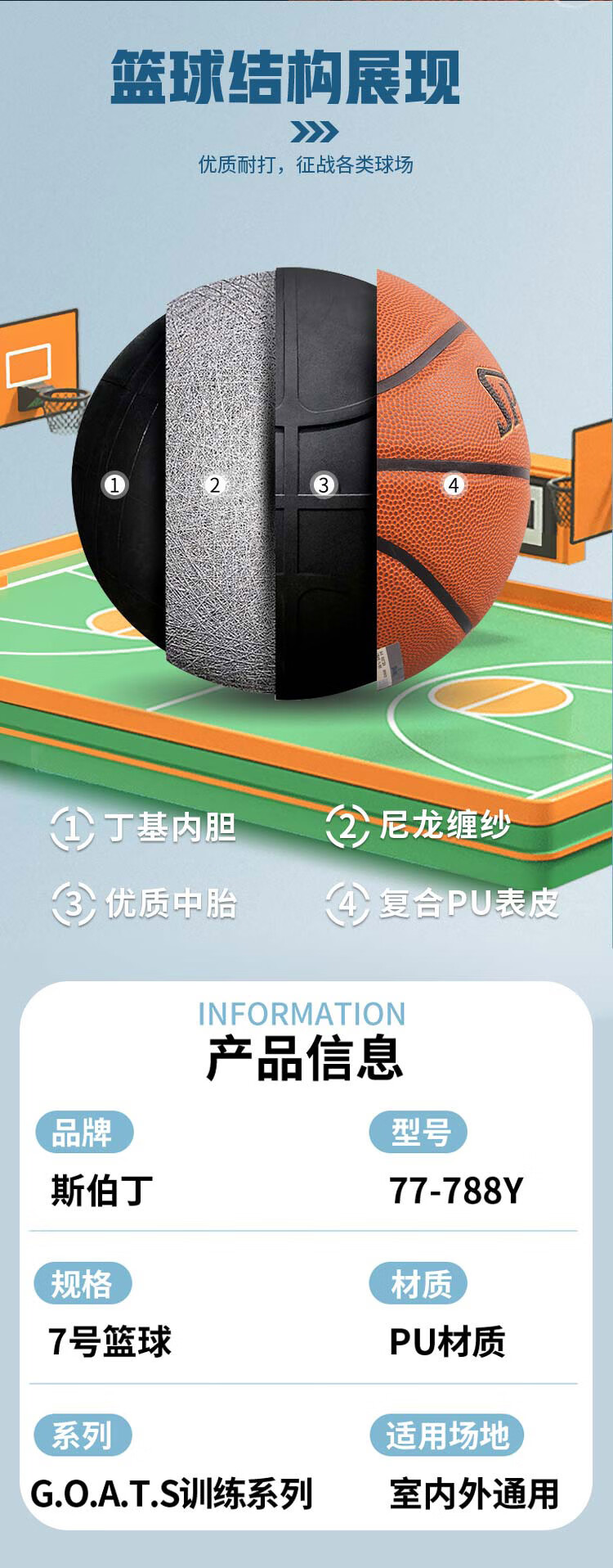 商品名称:斯伯丁77-788Y篮球 GOATS训练系列 砖色 7号球 单位:个
