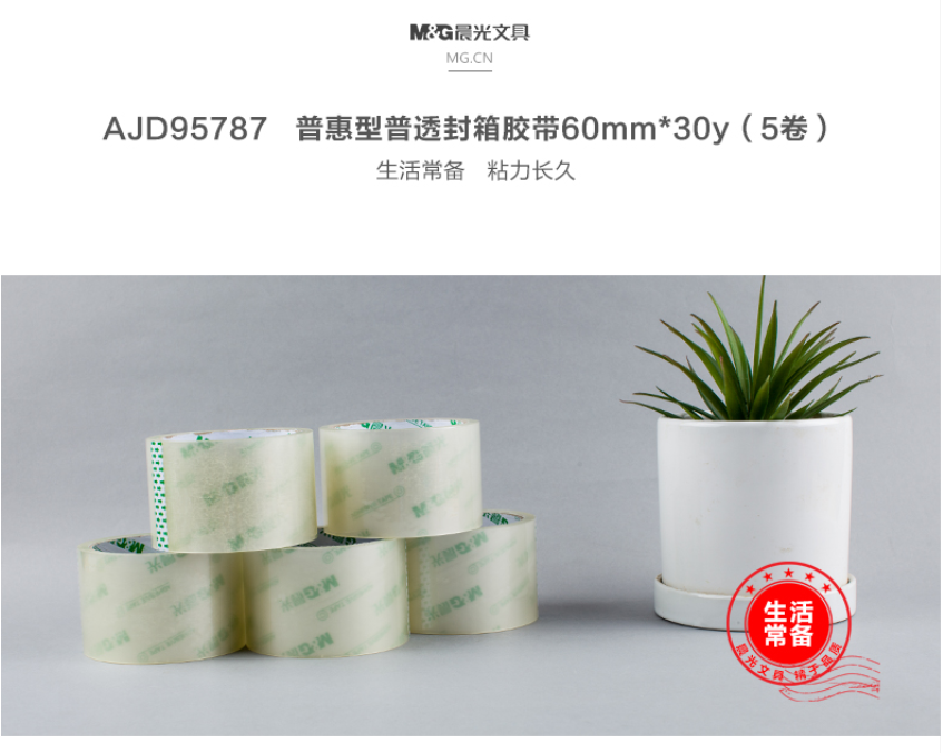 商品名称:晨光AJD95787普透封箱胶带 60mm*30Y 5卷/筒 单位:筒