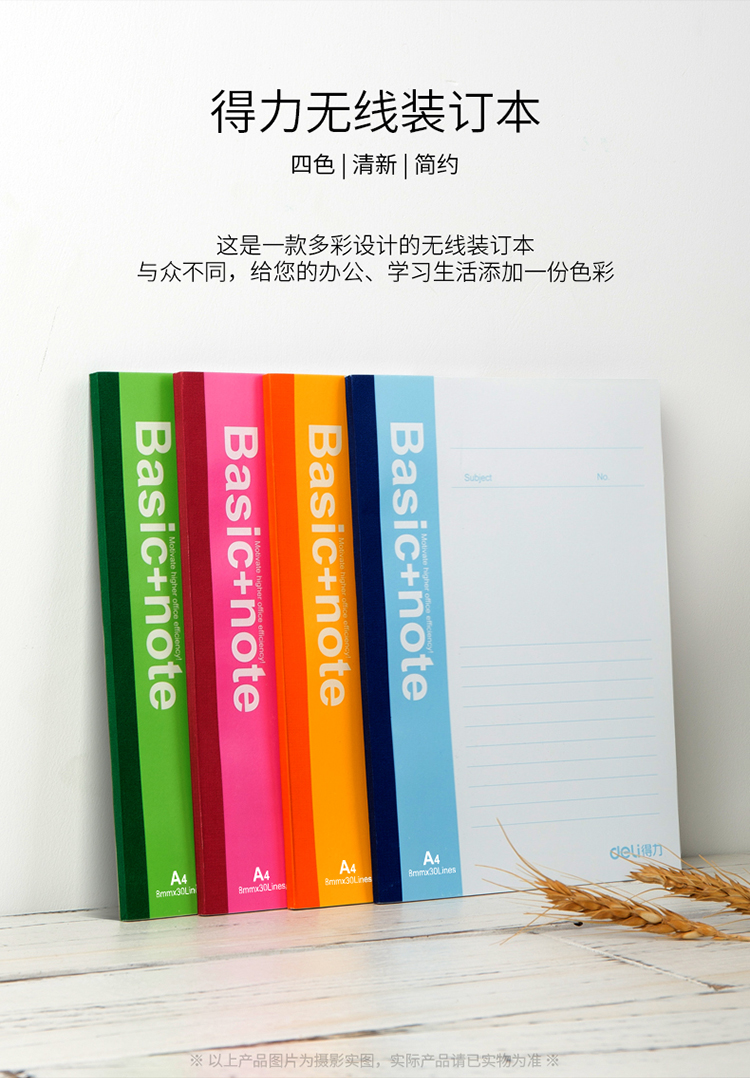 商品名称:得力7658 A4/60页无线装订软抄本办公记事本 文具笔记本子