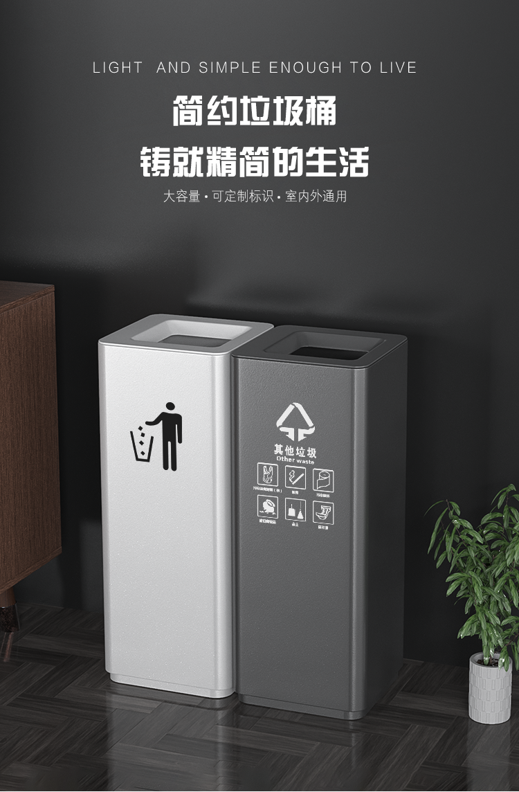 商品名称:商用大号立式垃圾桶 褐色 白桶两分类大号(定制垃圾桶)单位:个