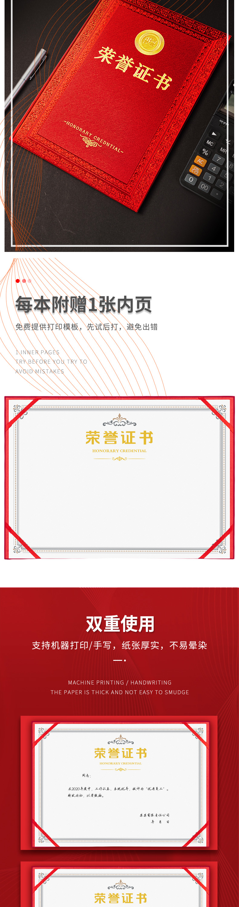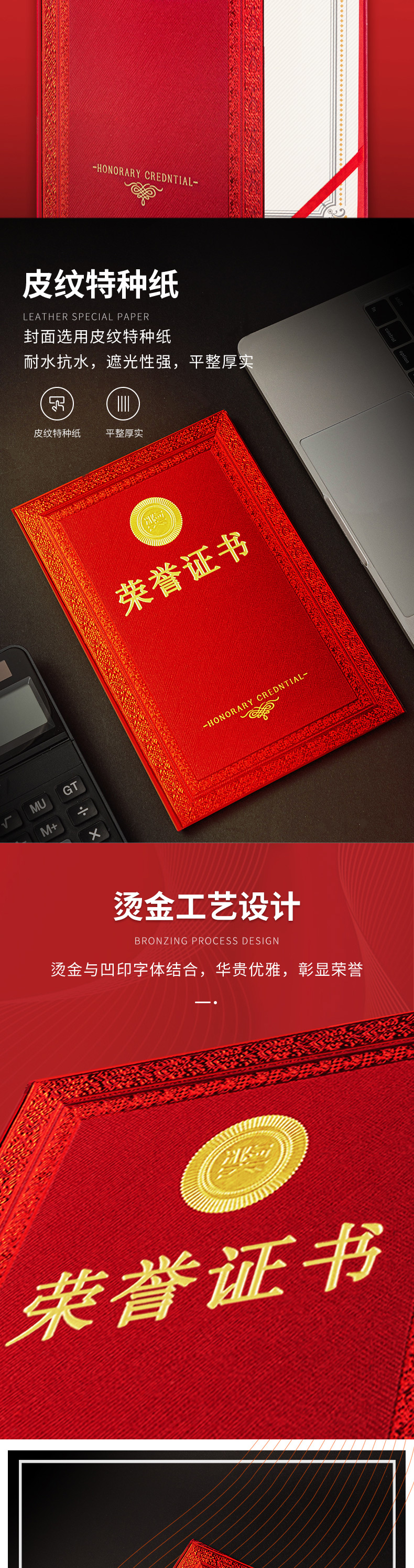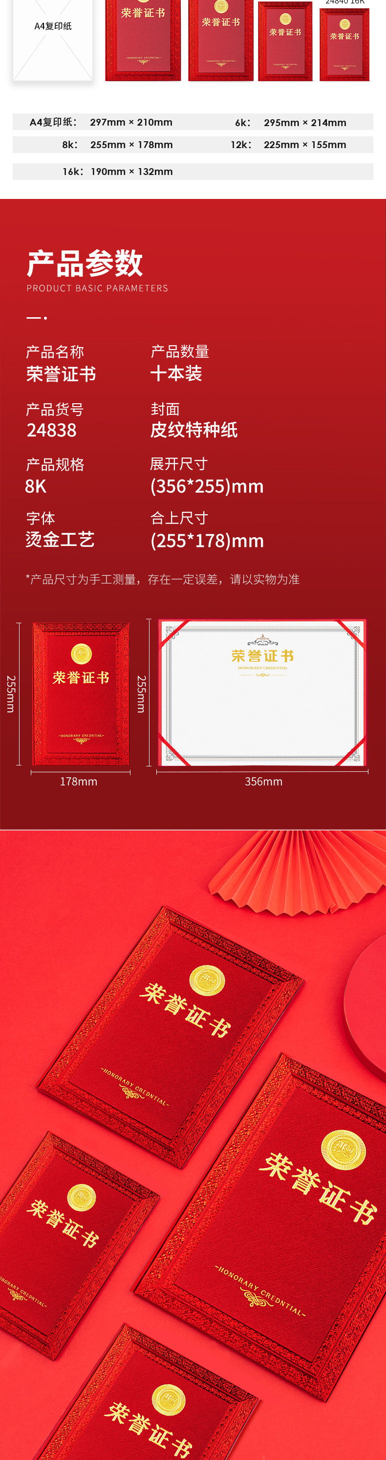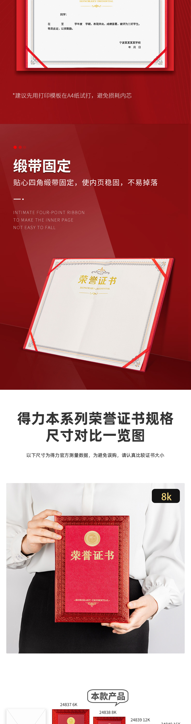 商品名称:得力24838荣誉证书 红色 8K 单位:本