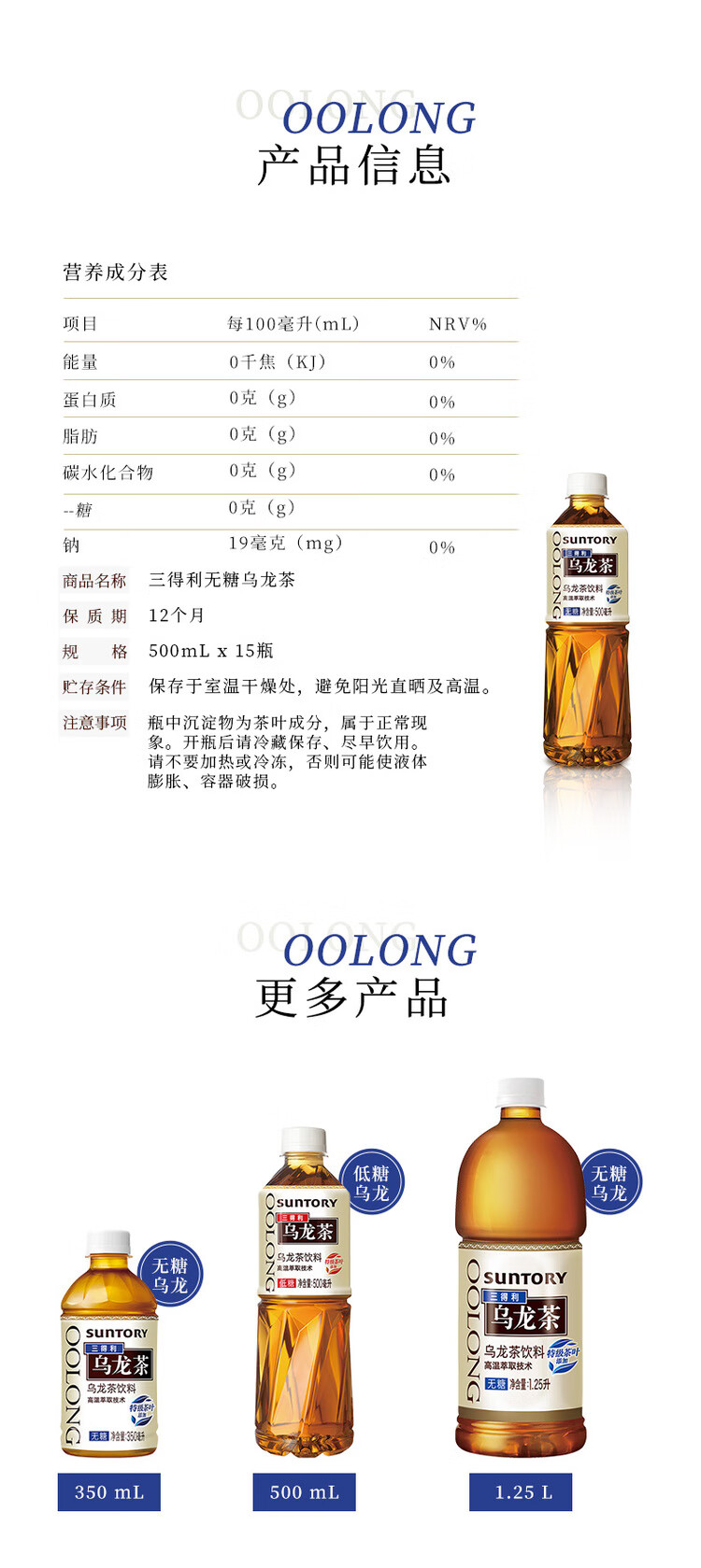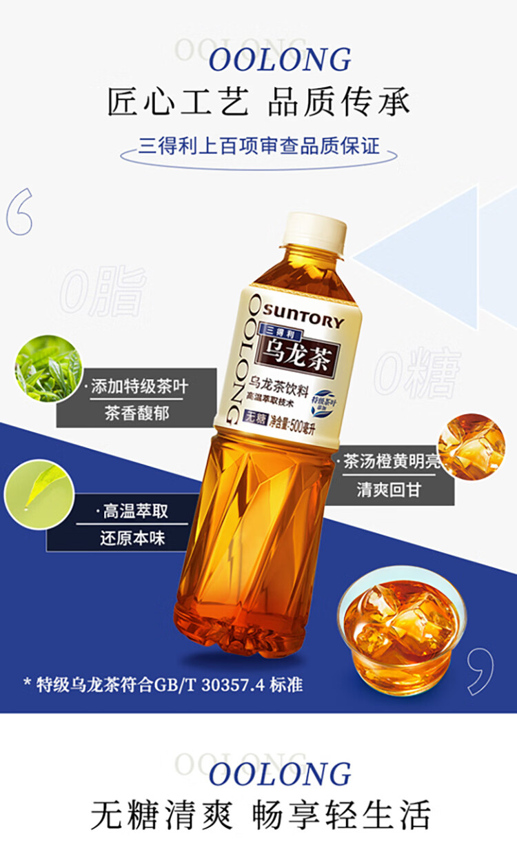 商品名称:三得利无糖乌龙茶 500ml/瓶 15瓶/箱 单位:箱