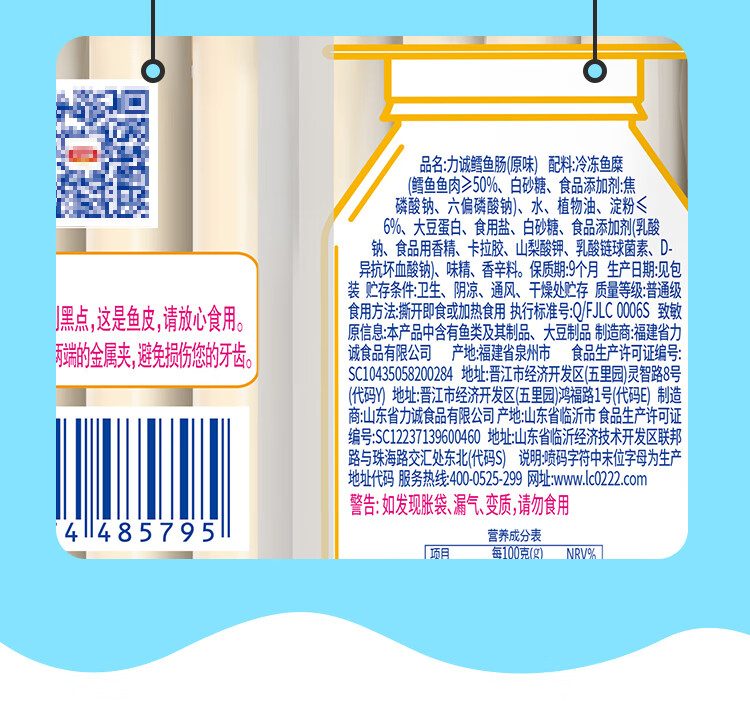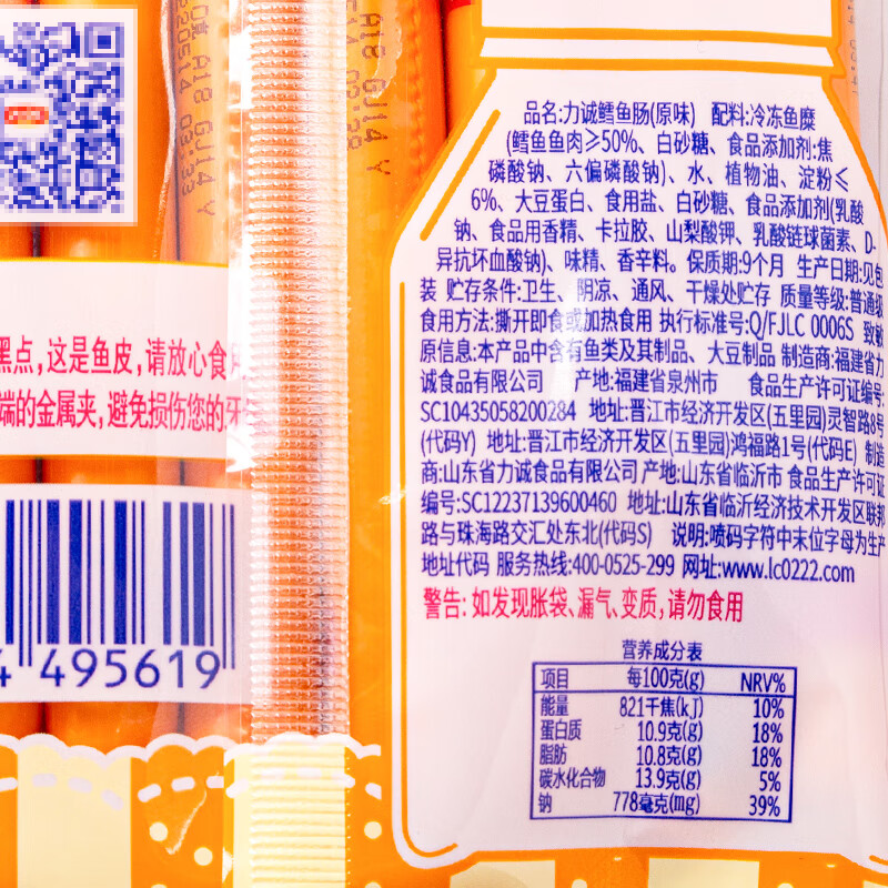 商品名称:力诚鳕鱼肠 原味 80g/袋 50袋/箱 单位:箱