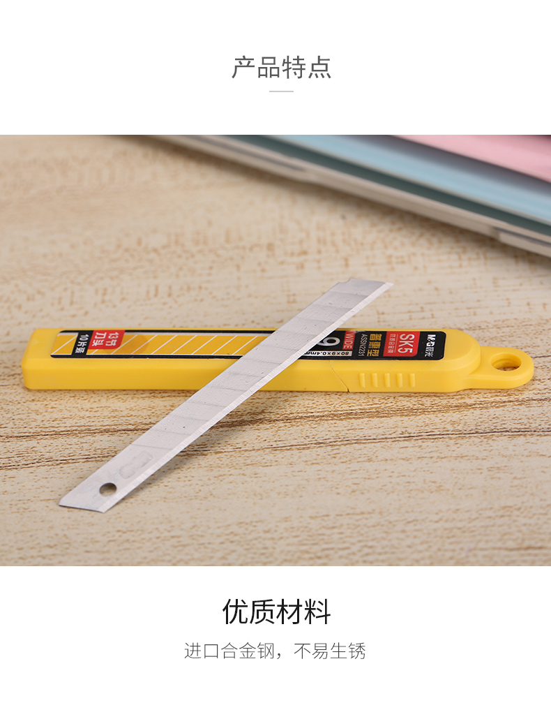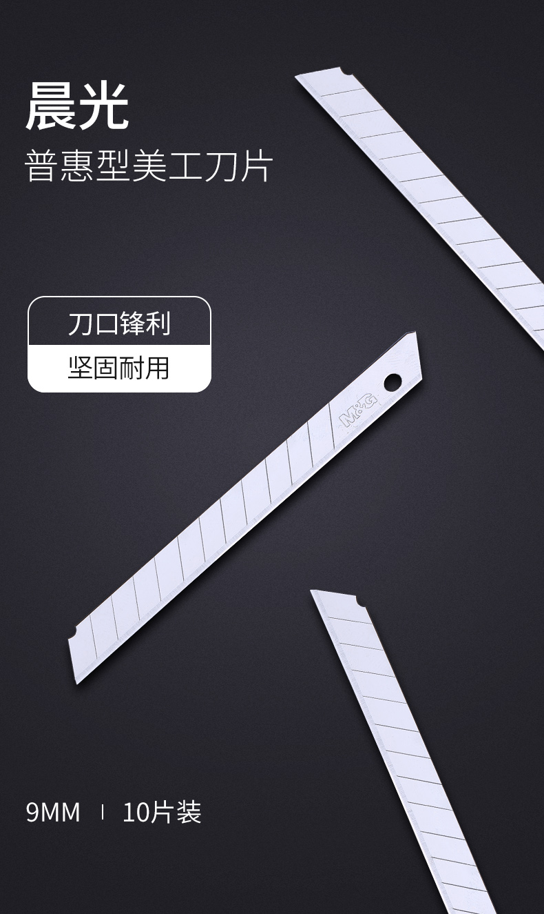 商品名称:晨光ASSN2231普惠型美工刀片 9mm 10片/盒 单位:盒
