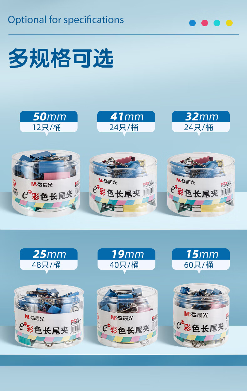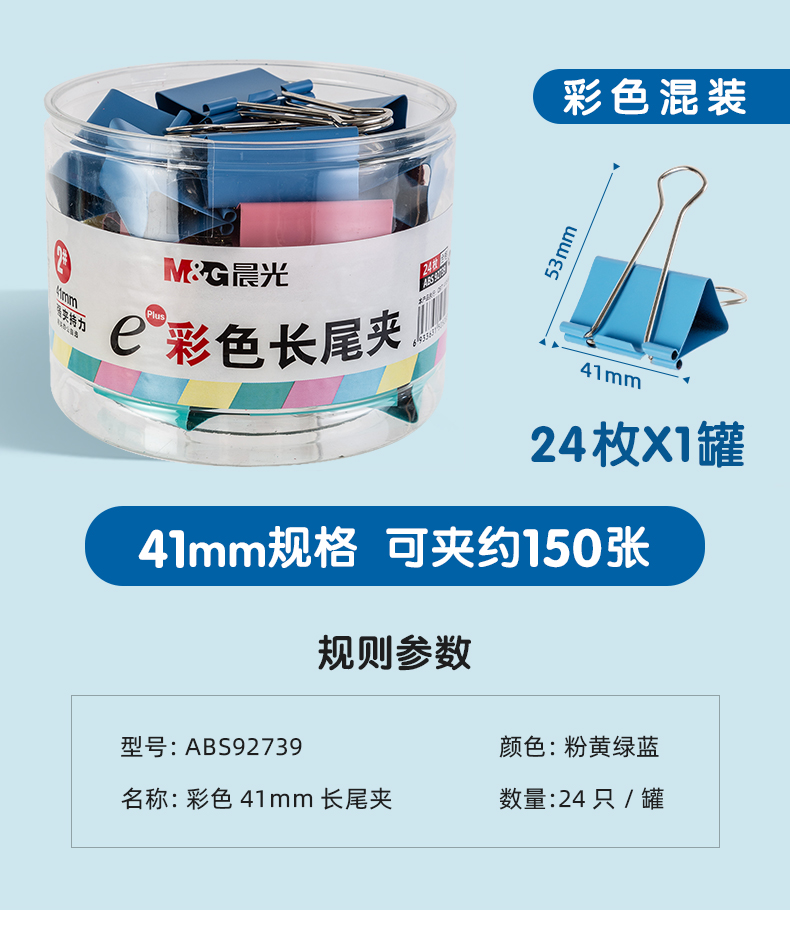 商品名称:晨光ABS92739彩色长尾夹 2# 41mm 24只/筒 单位:筒