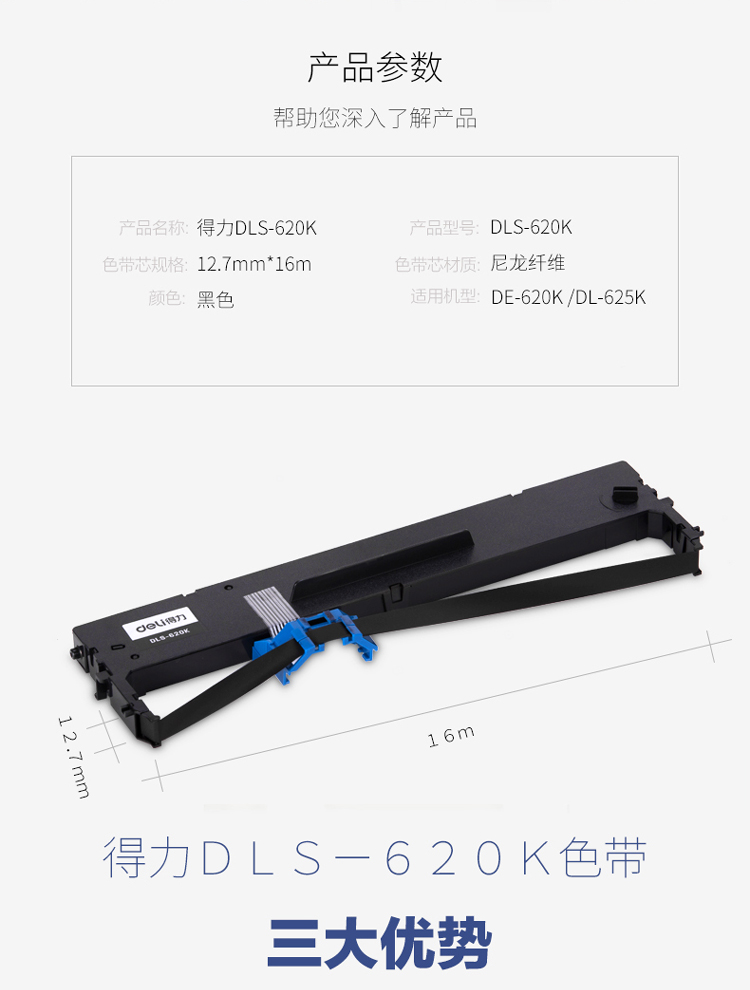 商品名称:得力DLS-620K 针式打印机黑色色带(适用DE-620K、DL-625K)