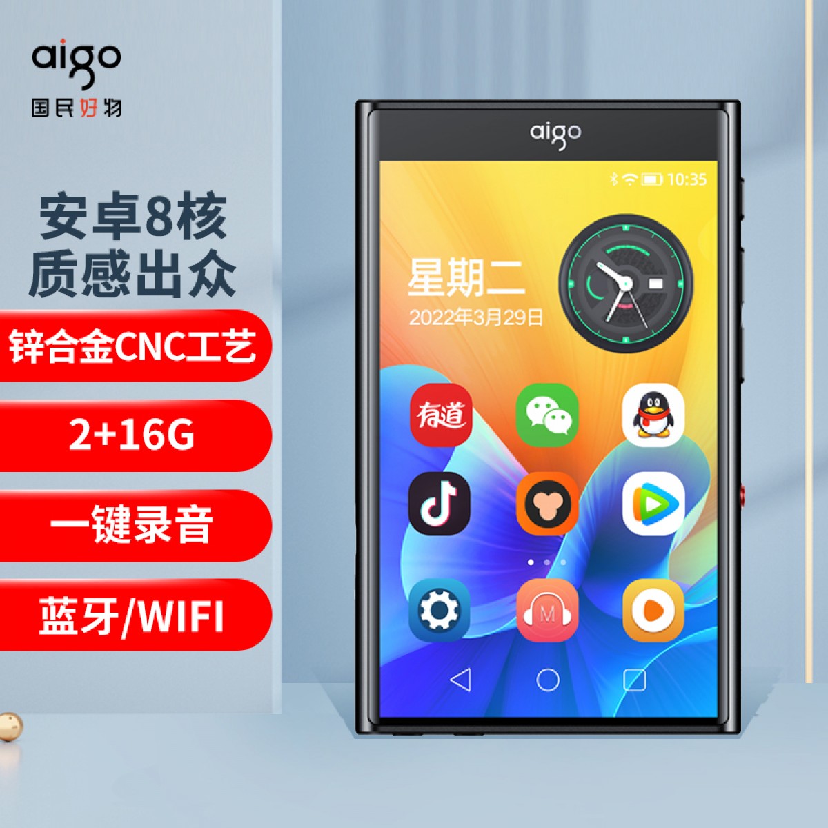 商品名称:爱国者aigo m2pro智能播放器mp4 黑色基础版 16G机身内存 单位:台