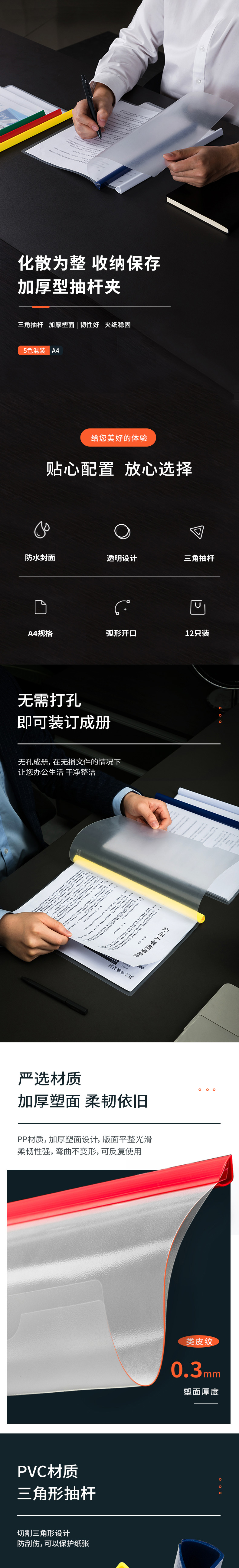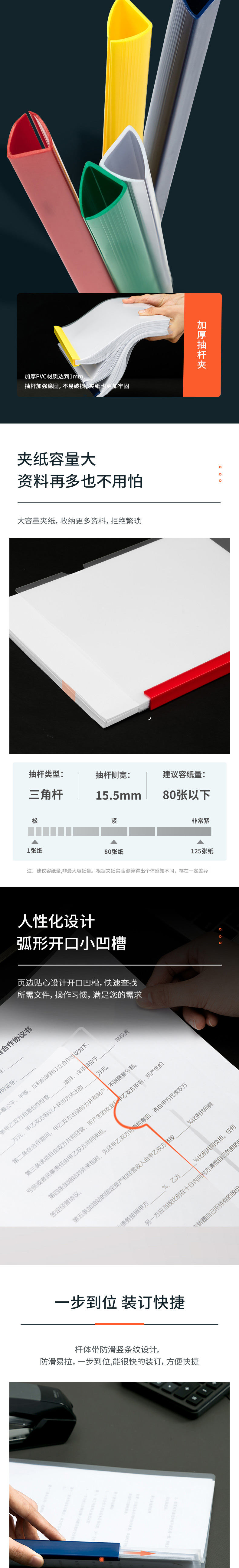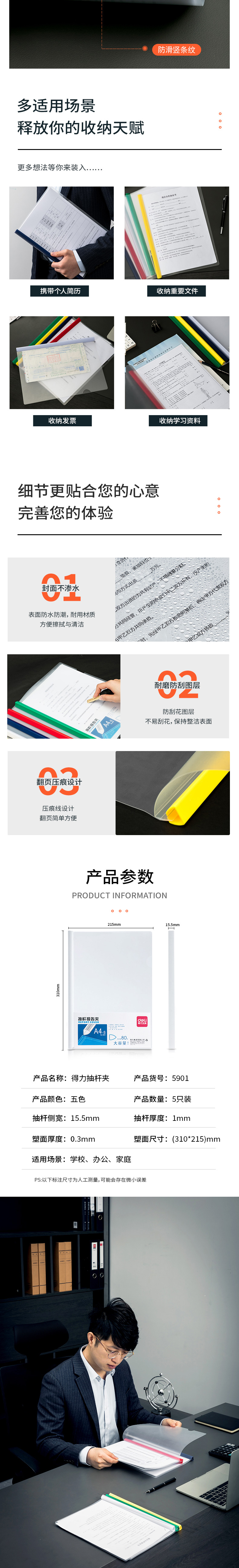 商品名称:得力5901抽杆夹A4 5个/包 白色 单位:个