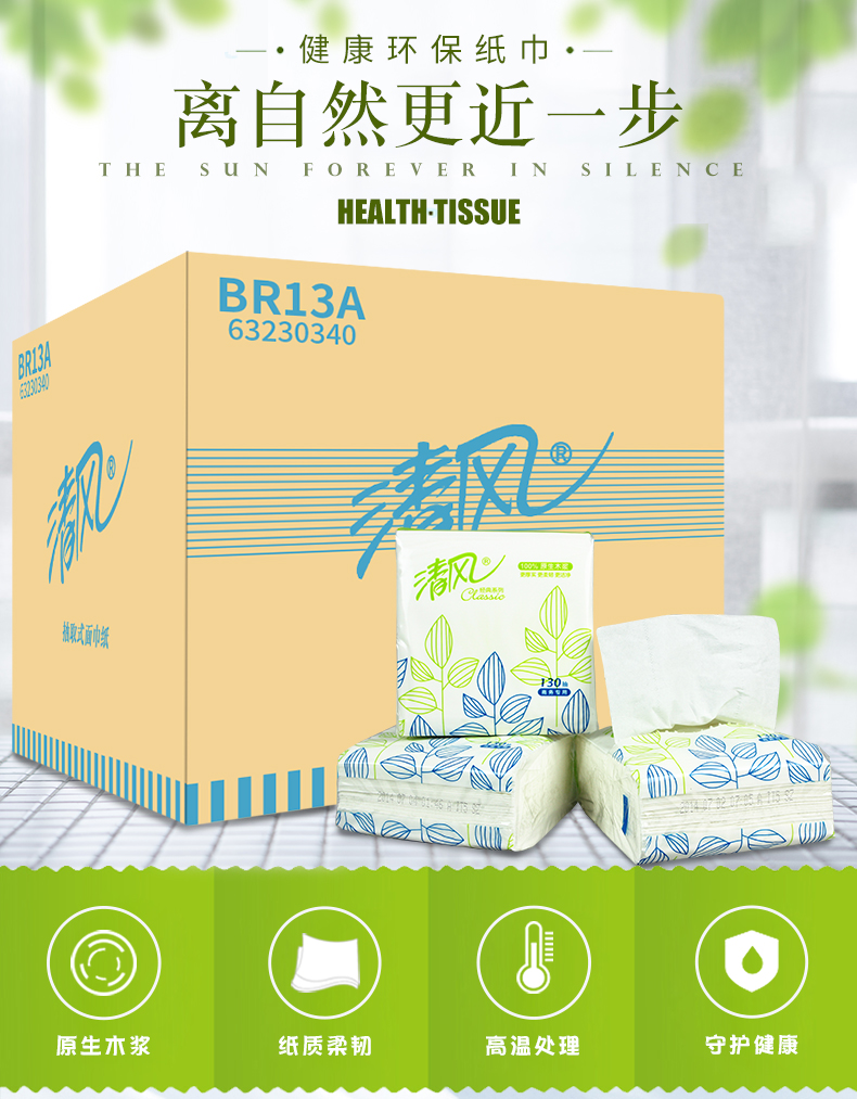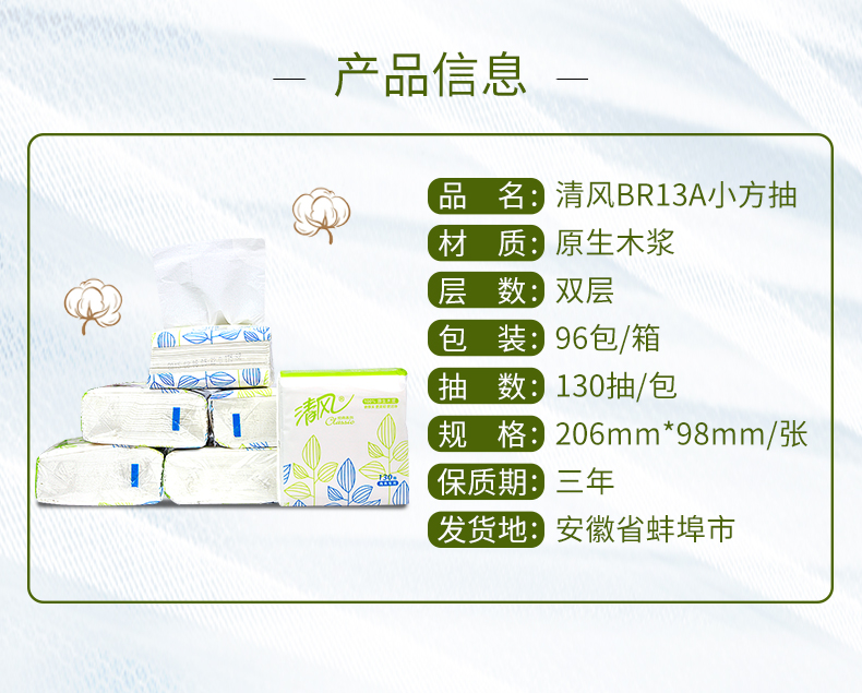 商品名称:清风BR13A双层简装塑包面纸 130抽/包 96包/箱 单位:箱