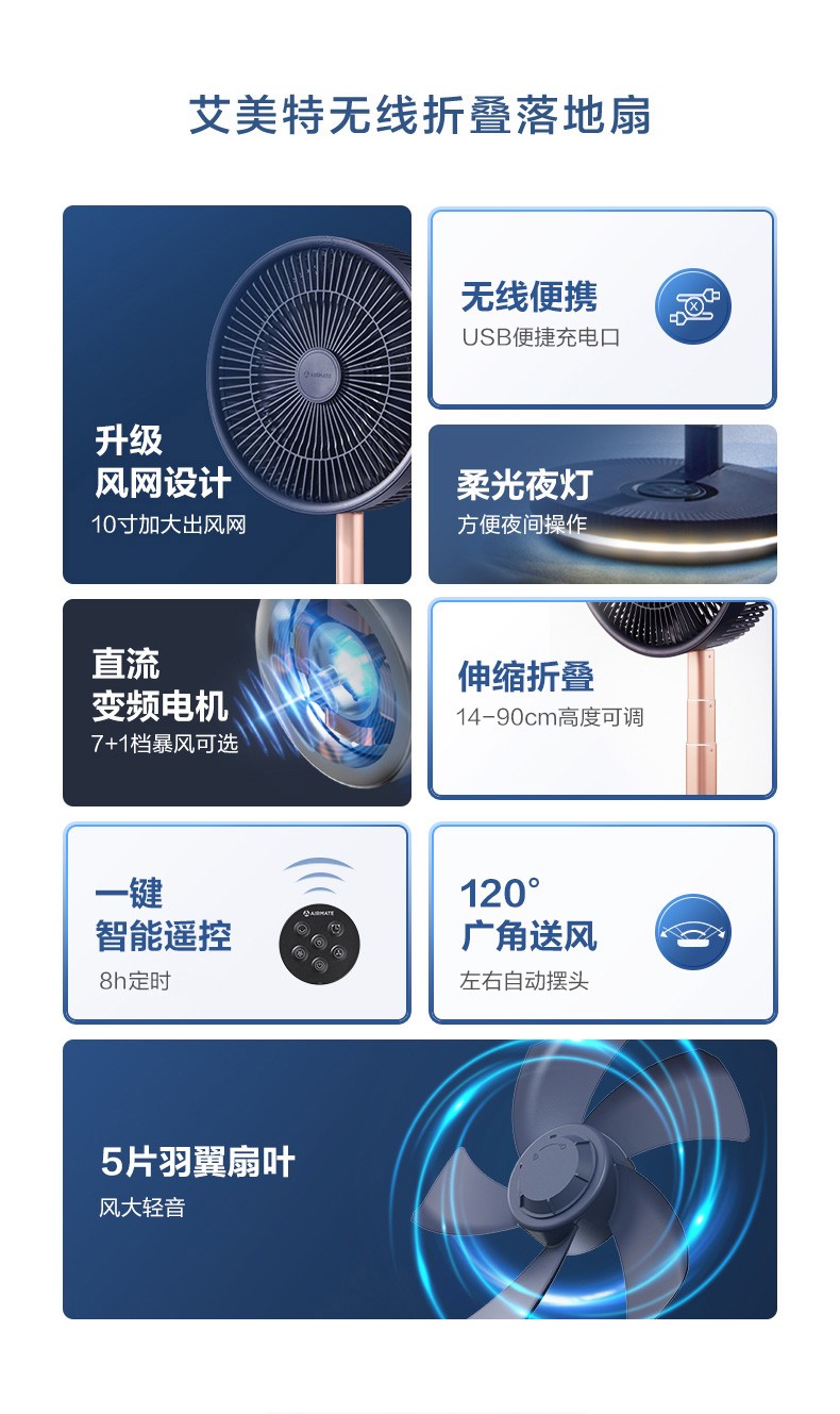 艾美特CM-RD20落地扇 蓝色