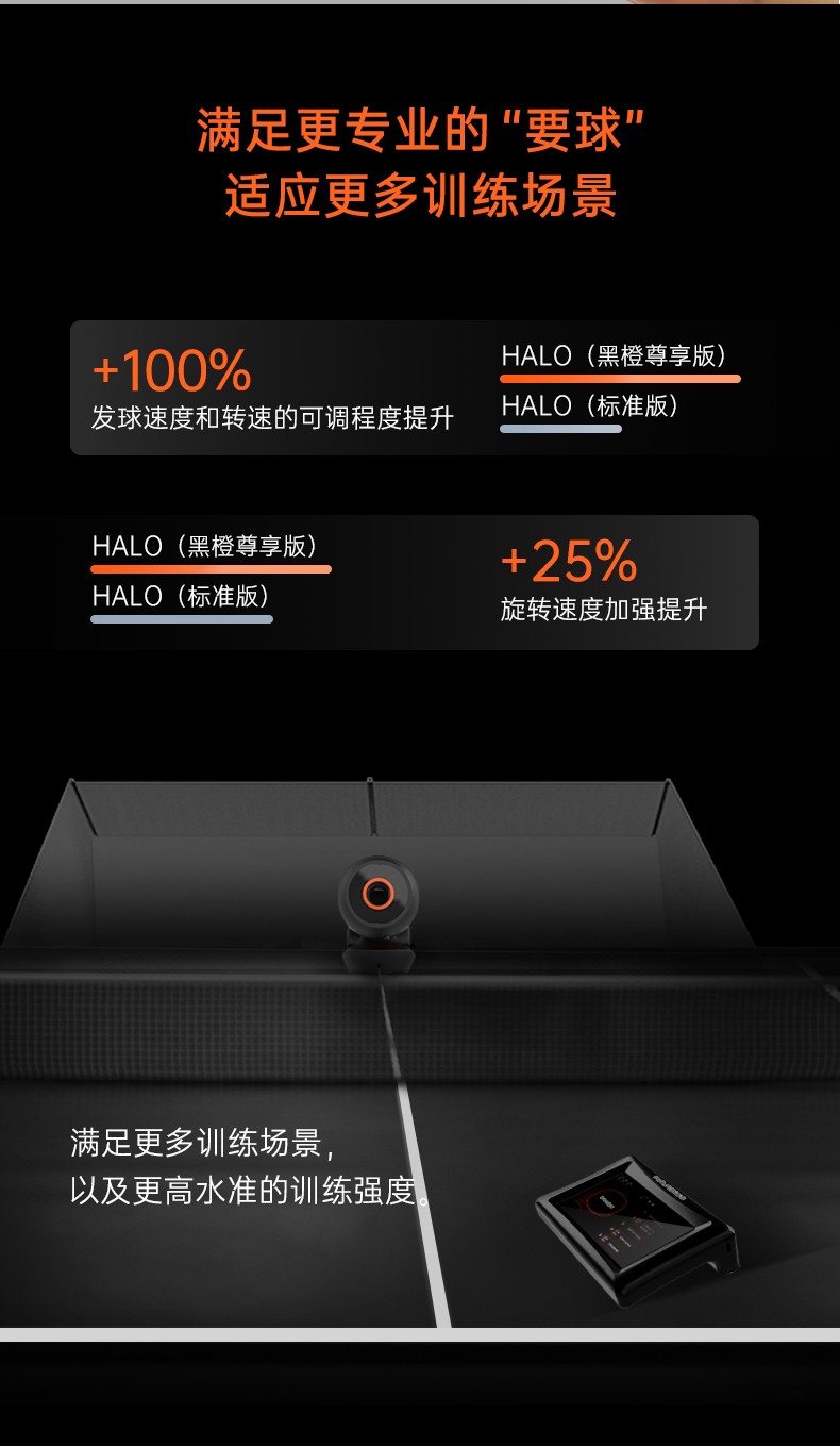 商品名称:庞伯特乒乓球发球机 HALO黑橙尊享版 单位:台