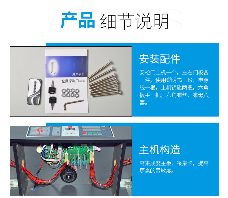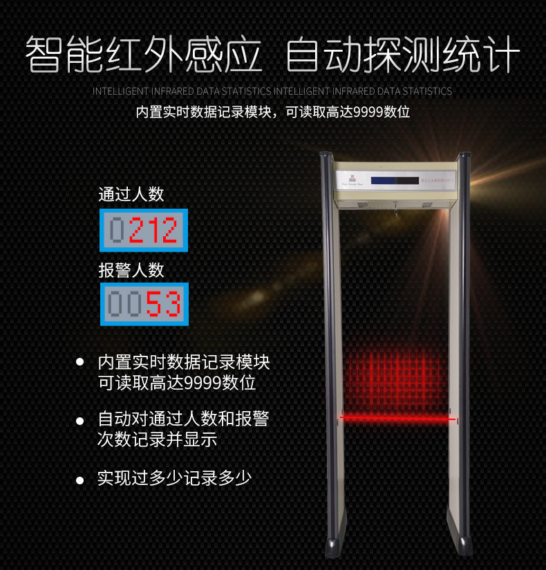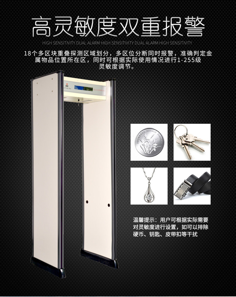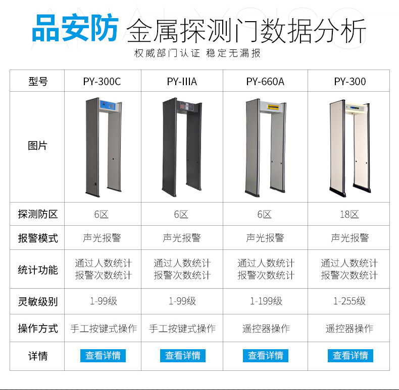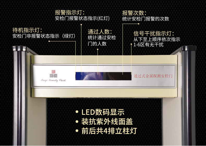 商品名称:品维安PY-300智能安检金属探测门 18区/液晶显示/双灯报警/255级高精度 单位:扇