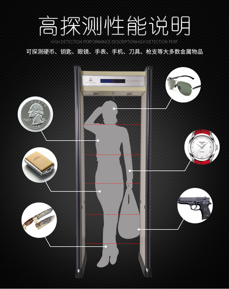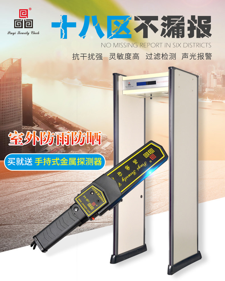 品维安PY-300智能安检金属探测门 18区/液晶显示/双灯报警/255级高精度