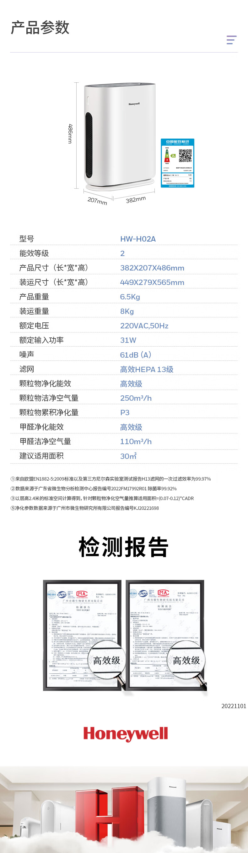 商品名称:霍尼韦尔HW-H02A空气净化器 单位:台