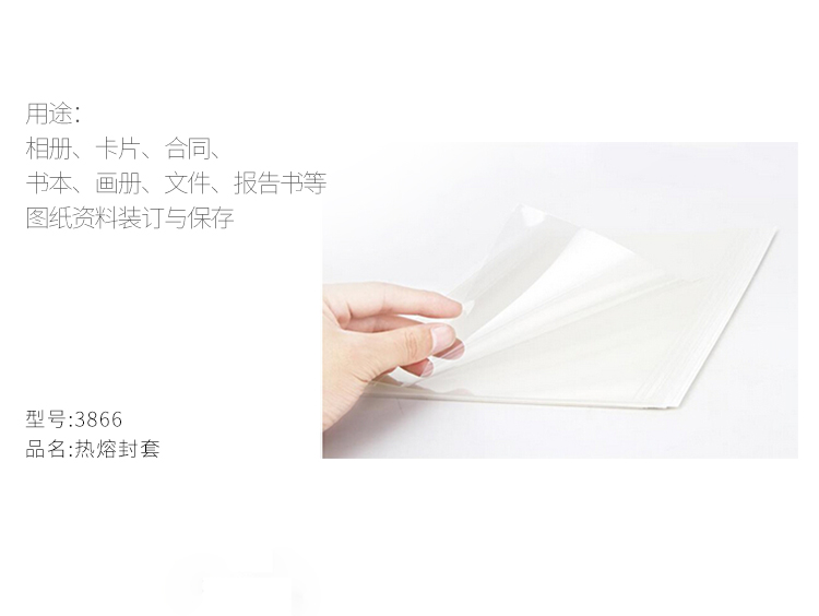 商品名称:得力3866热熔封套热熔装订机专用装订封皮 A4/4mm(10个装)