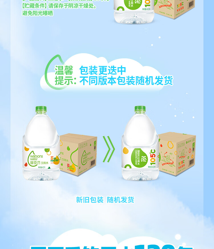 商品名称:屈臣氏饮用水(蒸馏制法)4.5L*4 单位:箱