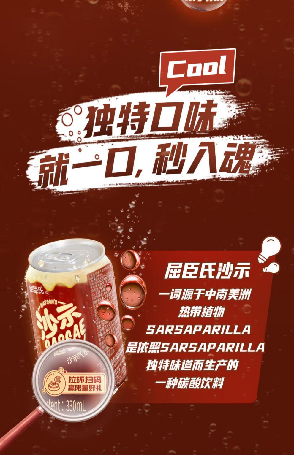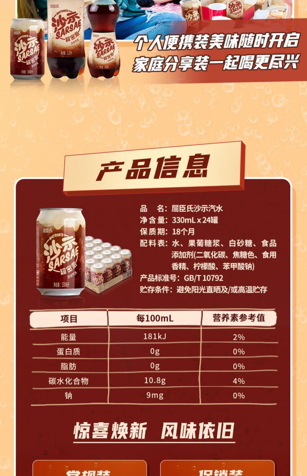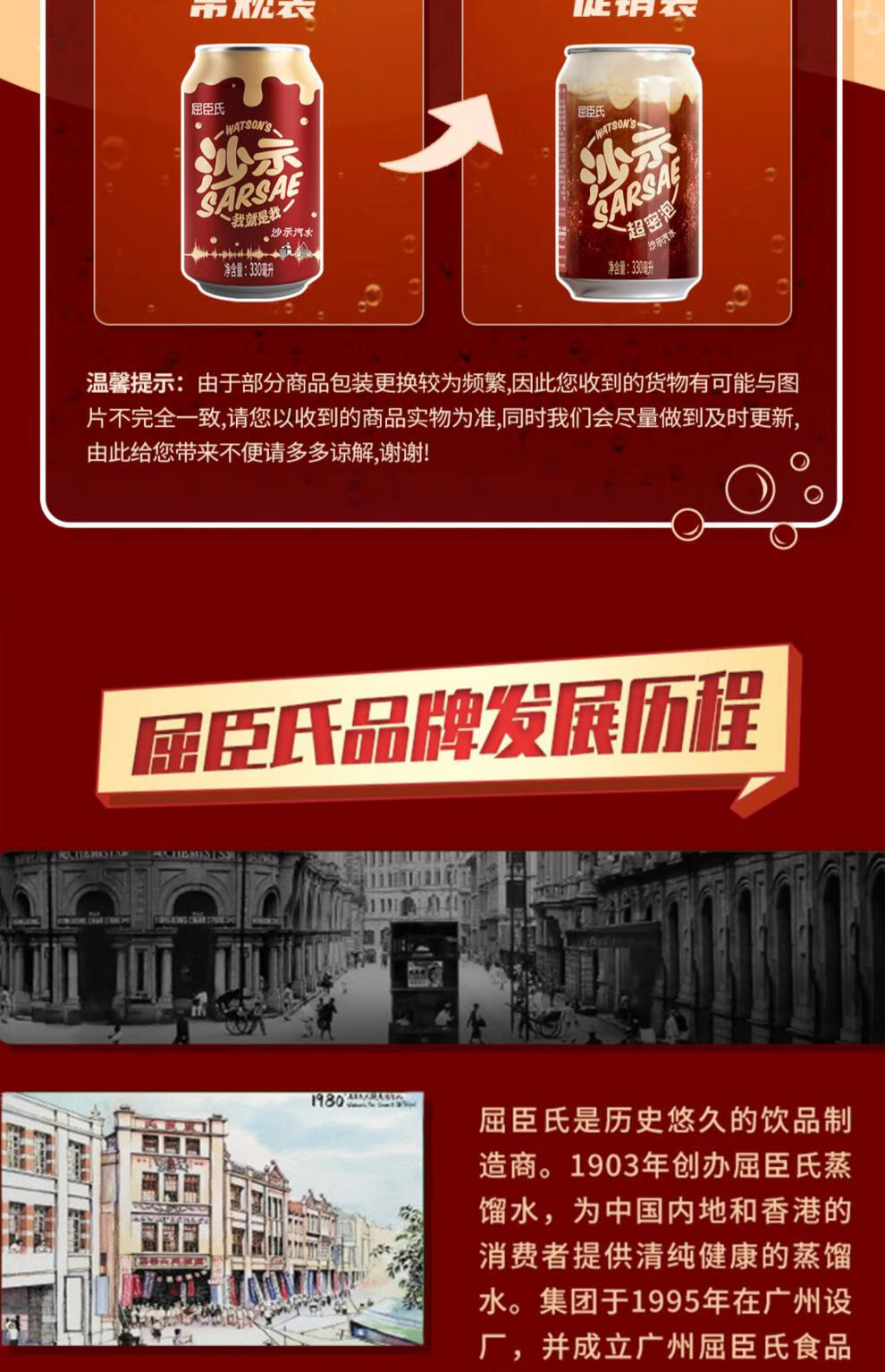 商品名称:屈臣氏沙示汽水 330ml*24 单位:箱