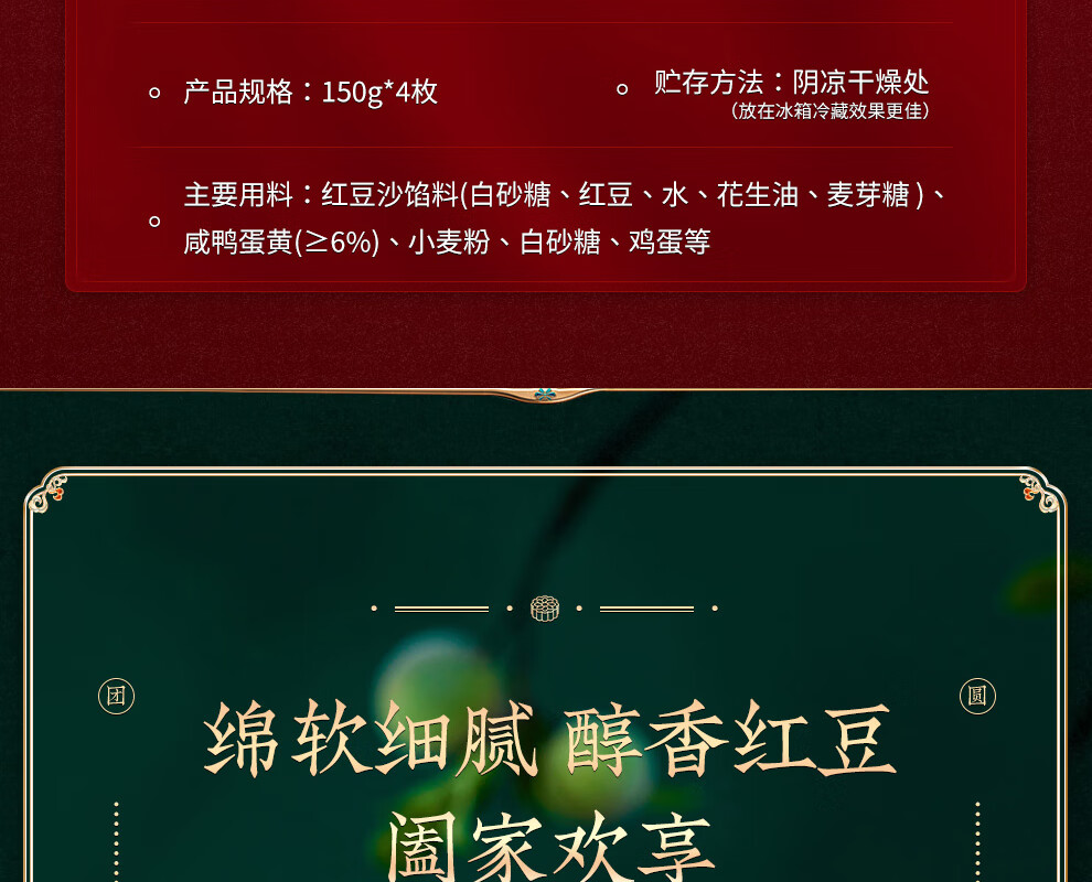 商品名称:元朗荣华蛋黄红豆月饼 单位:盒