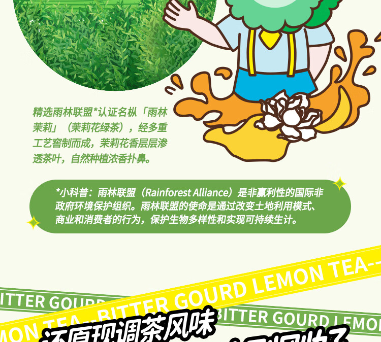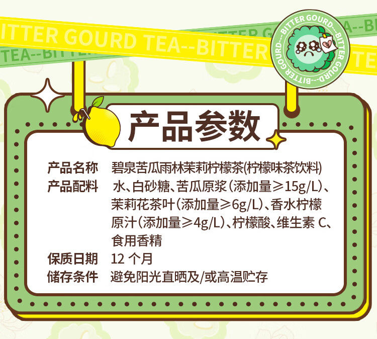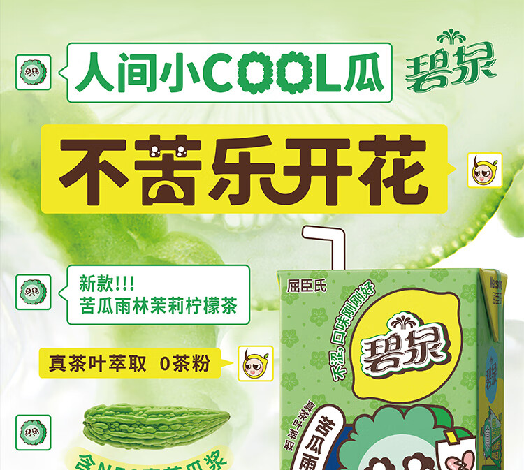 商品名称:屈臣氏碧泉苦瓜雨林茉莉柠檬茶 250ml 单位:盒