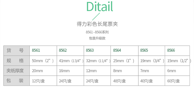 商品名称:得力(deli)8562 24只41mm黑色长尾票夹 金属票据夹燕尾夹铁夹子 大号