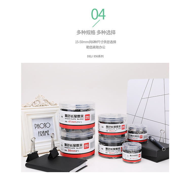 得力(deli)8562 24只41mm黑色长尾票夹 金属票据夹燕尾夹铁夹子 大号